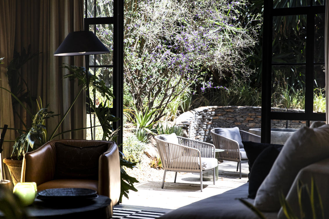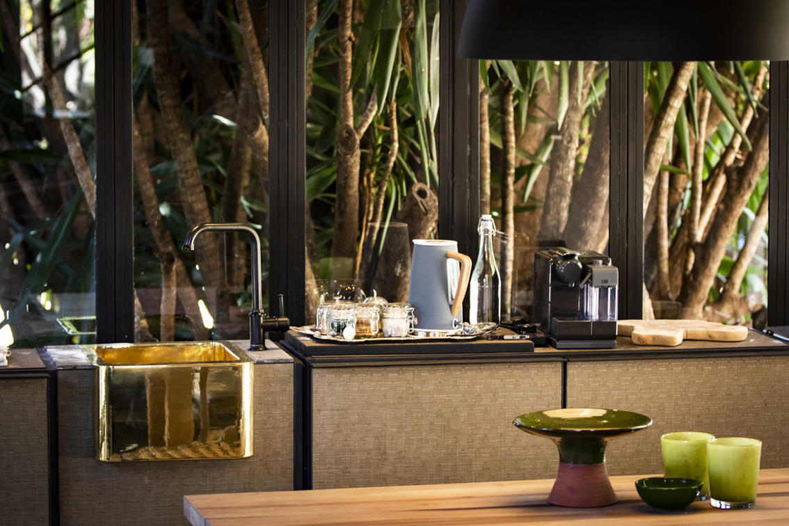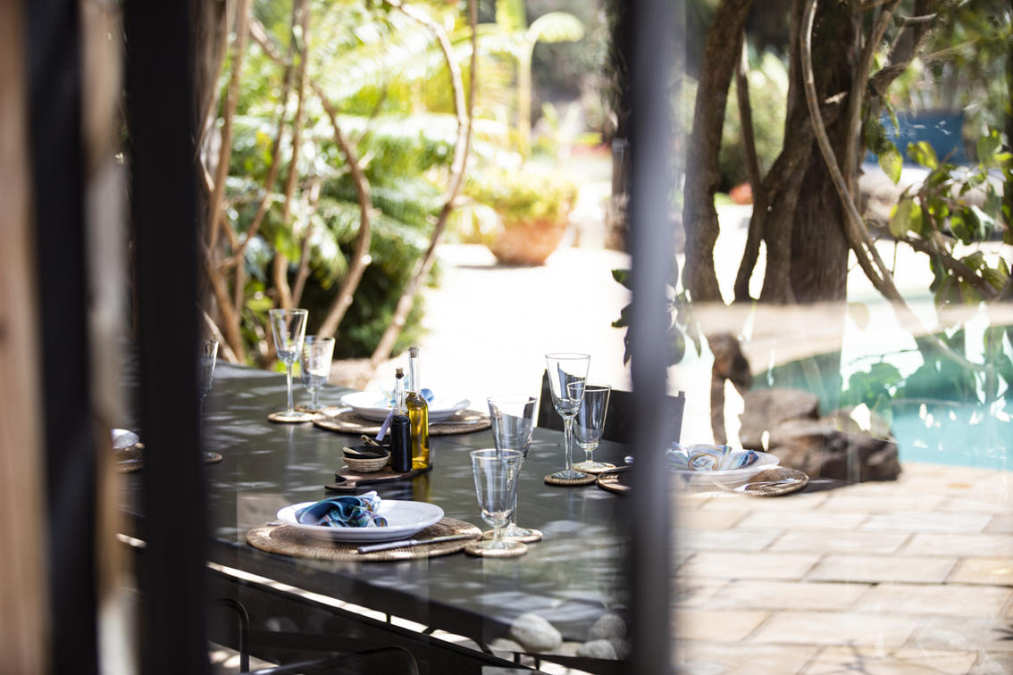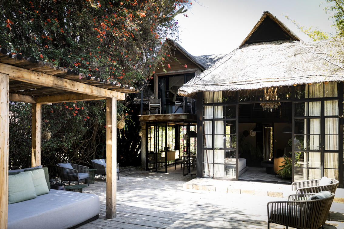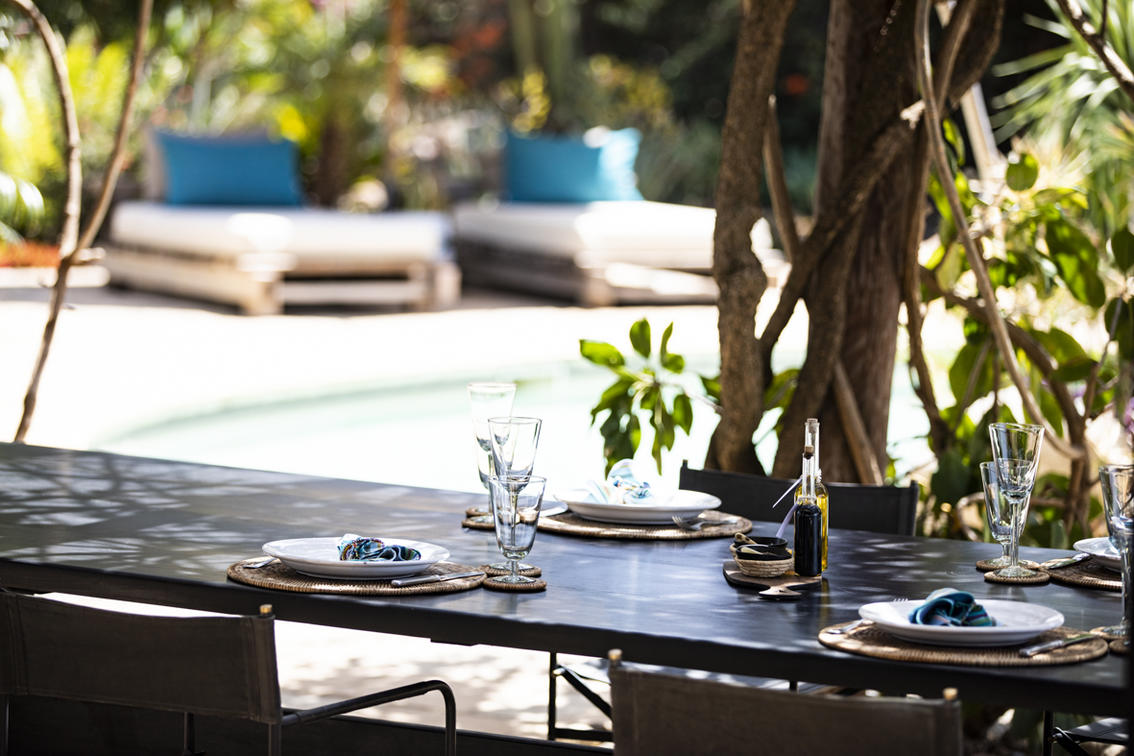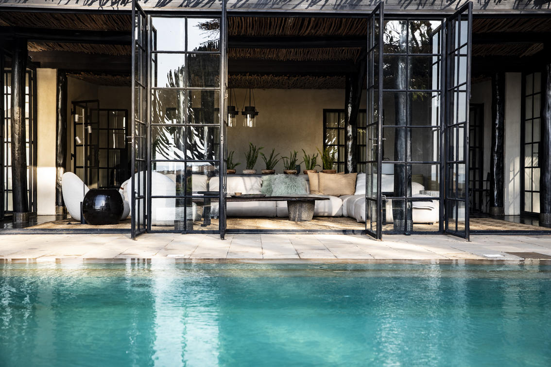 terrasse. Un mobilier élégant et contemporain, des tons inspirés du safari et des matériaux naturels créent une atmosphère de vacances détendue, idéale pour une famille multigénérationnelle ou 3 couples voyageant ensemble.