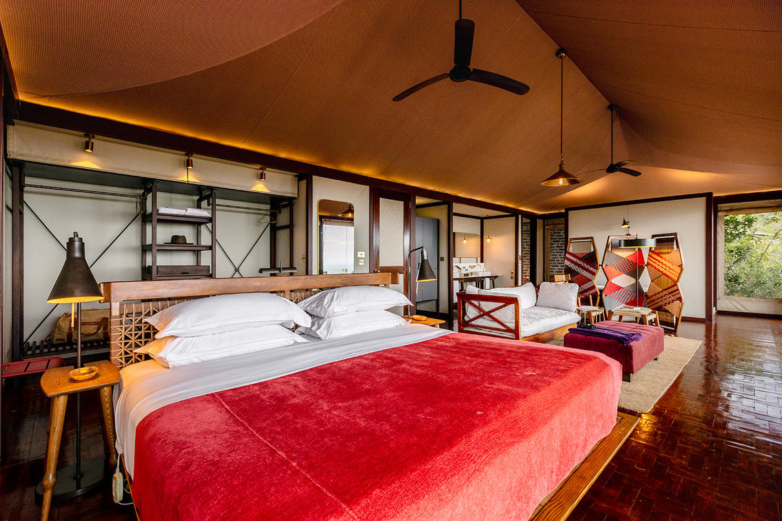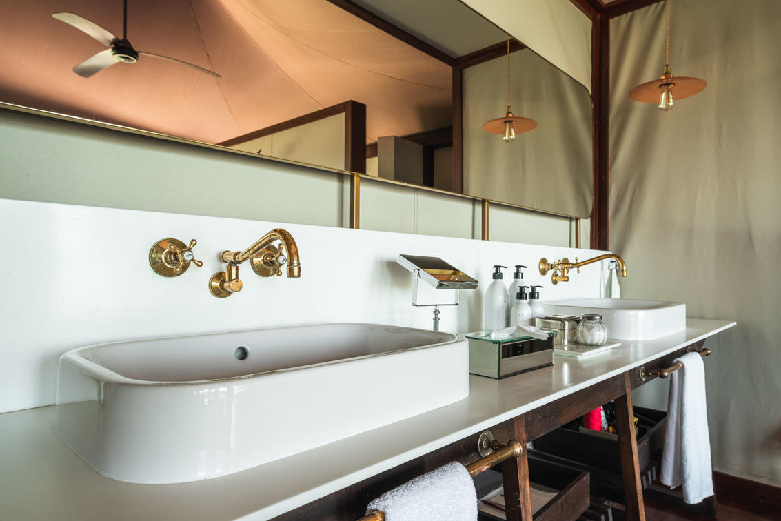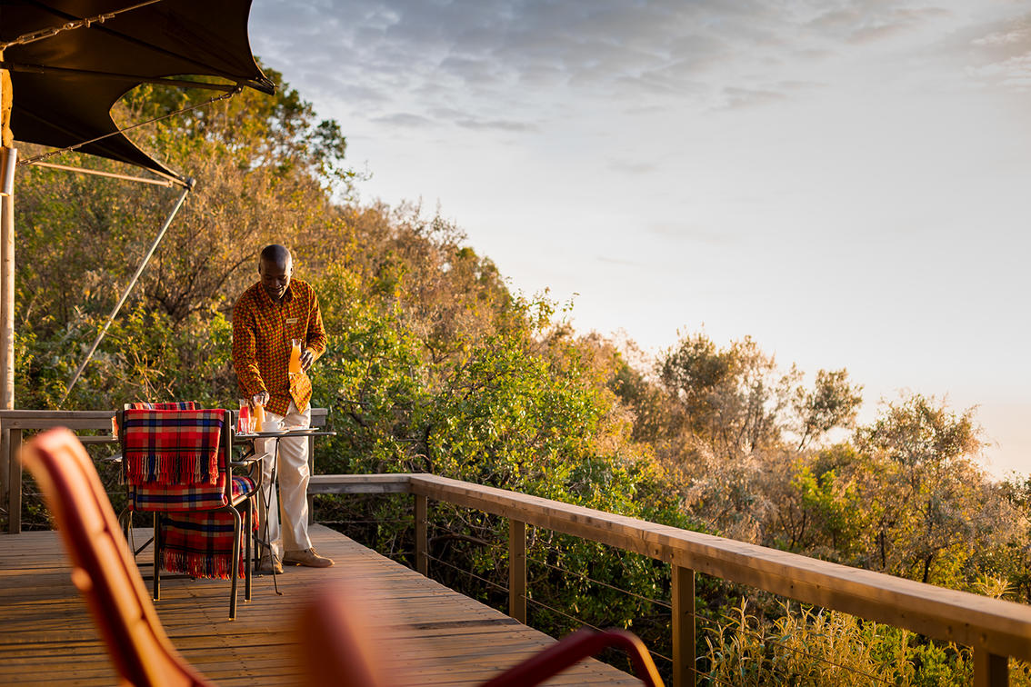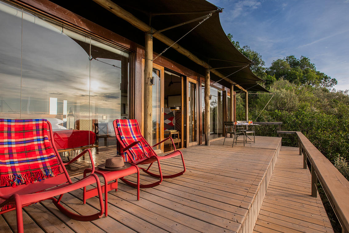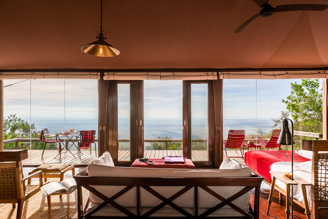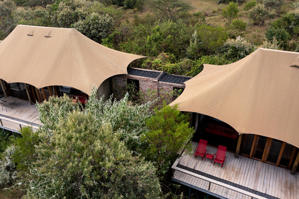 Le duo d'architectes Silvio Rech et Lesley Carstens, et Jan Allan, le roi de la toile du Kenya, ont conçu les suites élégantes et classiques sous tente d'Angama Mara avec une façade vitrée de 11 mètres de large. Chaque tente offre la même vue à couper le souffle — aucune n'est meilleure que la précédente — et chaque jour, le lever du soleil offre aux visiteurs une séance de théâtre tôt le matin alors que les montgolfières passent doucement.