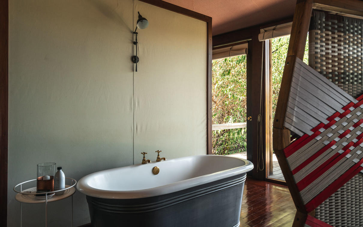 Du parquet poli, des touches de rouge masaï distinctives, une belle armoire à boissons (avec bar personnel et coffre-fort rangés avec tact), un meuble-lavabo à double vasque, des toilettes séparées, un bureau avec de nombreuses bornes de recharge, le WiFi, des équipements pour les clients d'Africology, une collection de livres d'Afrique de l'Est, un magnifique paravent tissé John Vogel et un hall de majordome permettant la livraison discrète de thé et de café tôt le matin, ajoutent au confort et le plaisir des clients dans leurs suites.