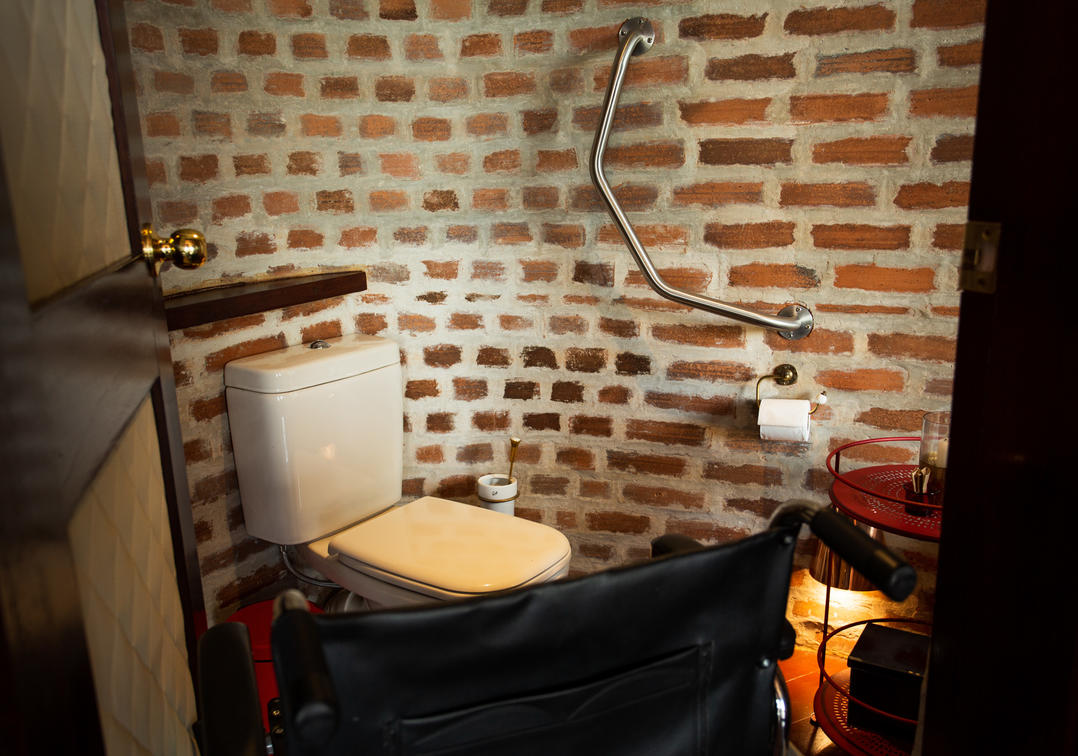 La tente Patty's a été équipée de barres d'appui à la fois dans la douche et dans les toilettes. La tente a été débarrassée de tout mobilier inutile, tandis que tous les changements de niveau ont été équipés de rampes légèrement inclinées. Tous les chemins de gravier ont été dégagés entre la tente, la zone réservée aux invités et le point de dépôt des véhicules.