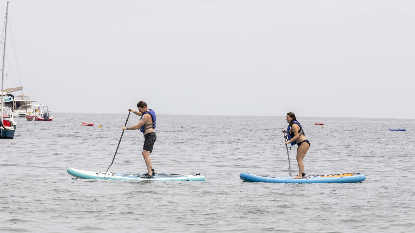 Glissez sur les eaux calmes et cristallines du golfe de Nicoya et découvrez l'océan d'un point de vue paisible et immersif. Le paddle-board offre l'équilibre parfait entre détente et aventure légère, permettant à vos invités de se déplacer à leur propre rythme tout en profitant d'une vue imprenable sur la côte.