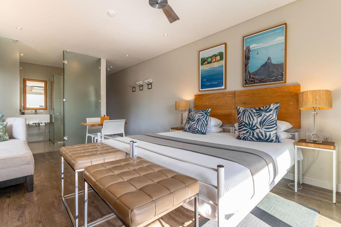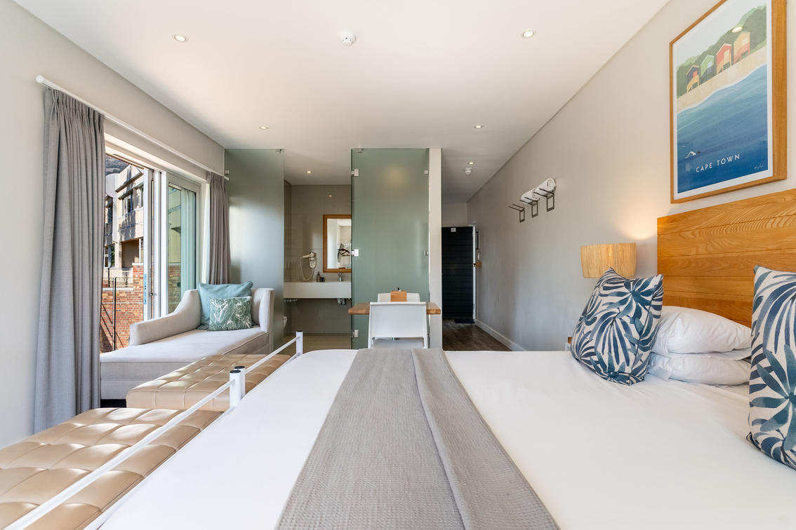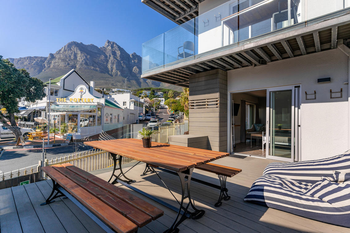 Les studios décloisonnés du premier étage offrent tous une vue panoramique sur la mer et disposent d'un balcon privé. Le studio est idéalement situé à 100 mètres de la promenade et de la plage de Camps Bay.
