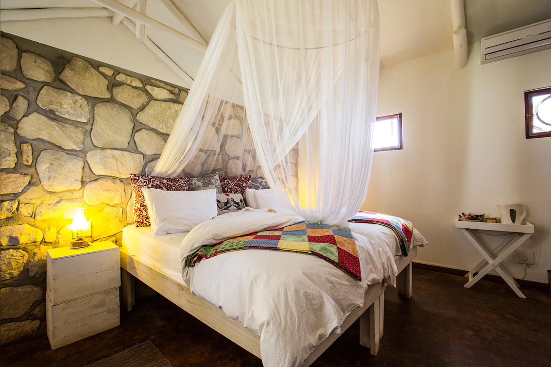 Cette chambre est située à l'extrémité des jardins luxuriants. Elle est équipée de 4 lits simples, d'une salle de bain (douche uniquement), d'un climatiseur et de thé/café.