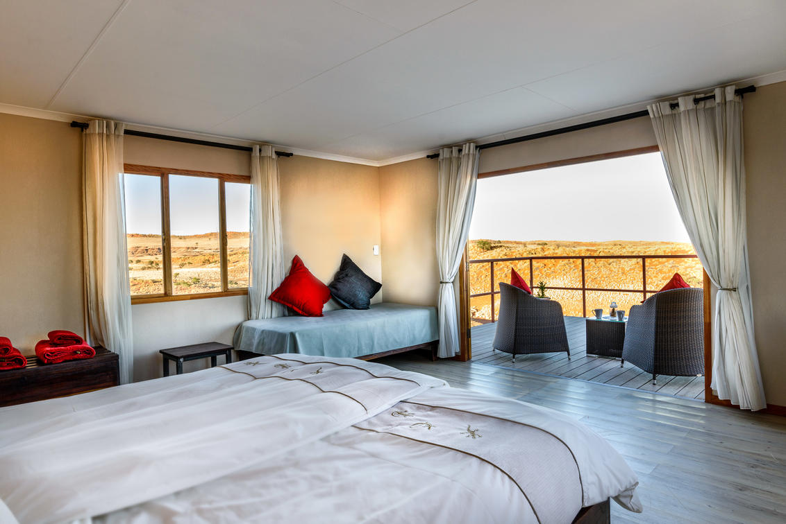 Chaque bungalow offre une vue splendide sur les dunes de sable, et possède une salle de bain et une véranda privée. Les lits doubles peuvent être roulés jusqu'au balcon, pour une nuit sous les étoiles.