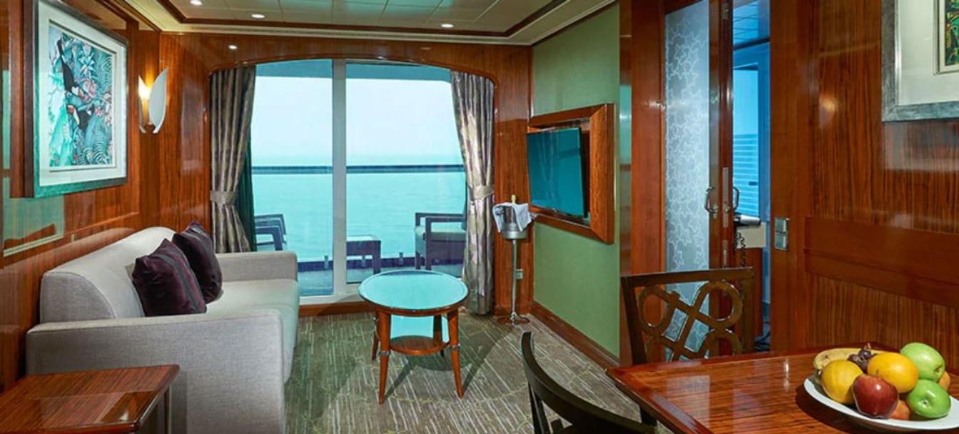 Ces Penthouses Courtyard font une expérience de croisière incroyable. Elles peuvent accueillir trois personnes, avec une chambre avec un lit queen-size, une baignoire et une douche de luxe et une literie supplémentaire pour accueillir une personne supplémentaire. Vous profiterez également d'un coin salon, d'un coin repas, d'un balcon privé et d'un accès à la cour privée. Un service de majordome et de concierge est assuré.