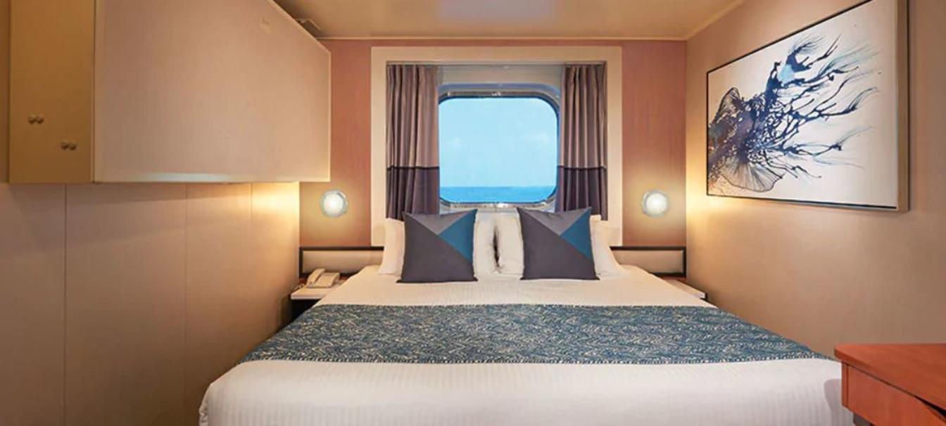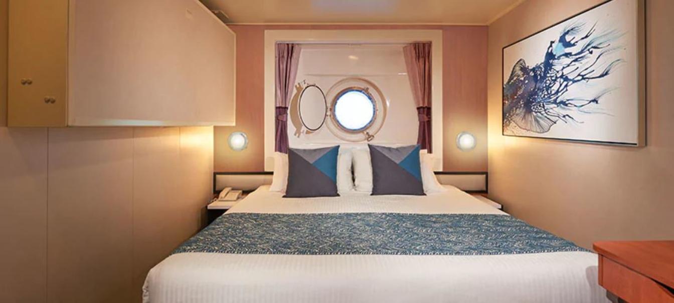 Ces cabines Oceanview peuvent accueillir jusqu'à quatre personnes et disposent d'une fenêtre ou d'un hublot, avec une vue imprenable. Deux lits inférieurs qui se convertissent en lit queen-size et une literie supplémentaire est fournie pour accueillir jusqu'à deux personnes supplémentaires.