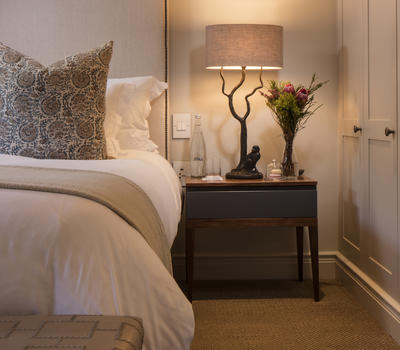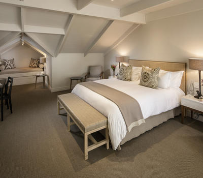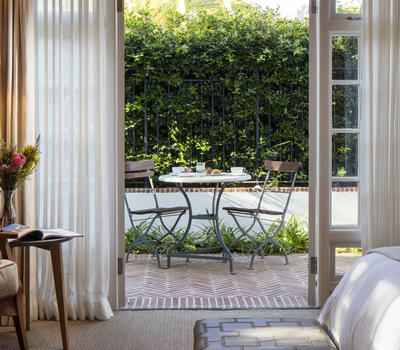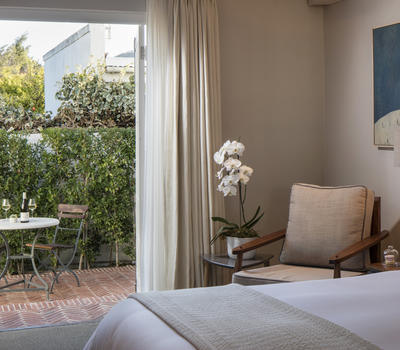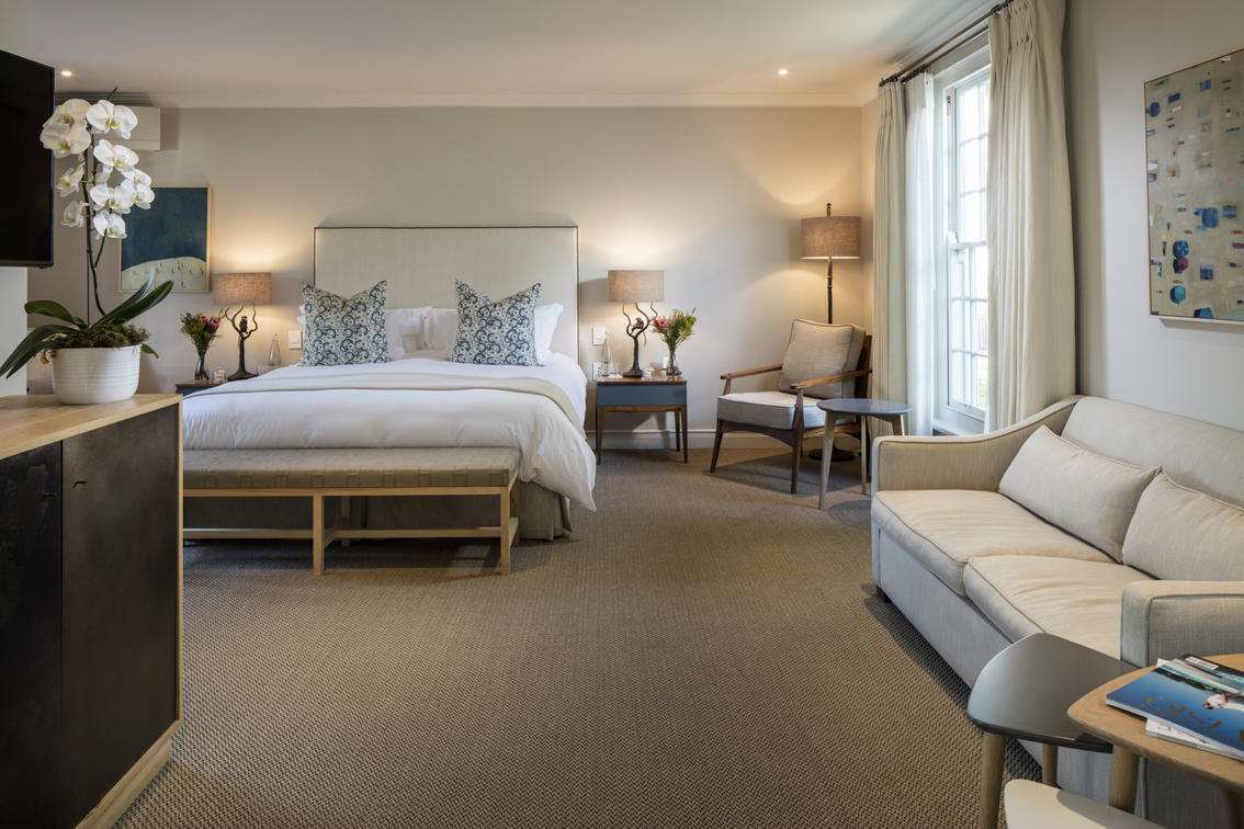 D'une superficie moyenne de 70 m²/753,47 pieds carrés, la suite privée située séparément du bâtiment principal dispose d'un coin salon avec cheminée et d'un dressing avec bureau de toilette. Le coin salon extérieur offre une vue sur la piscine du Leeu House, inspirée du paradis tropical, et sur les montagnes. C'est également l'endroit idéal pour admirer Leopard On A Rock du sculpteur Dylan Lewis.