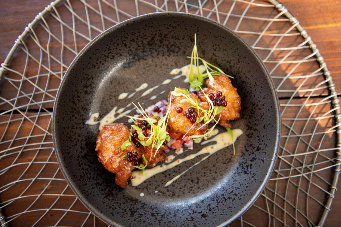 Zone principale du lodge avec pont menant aux suites