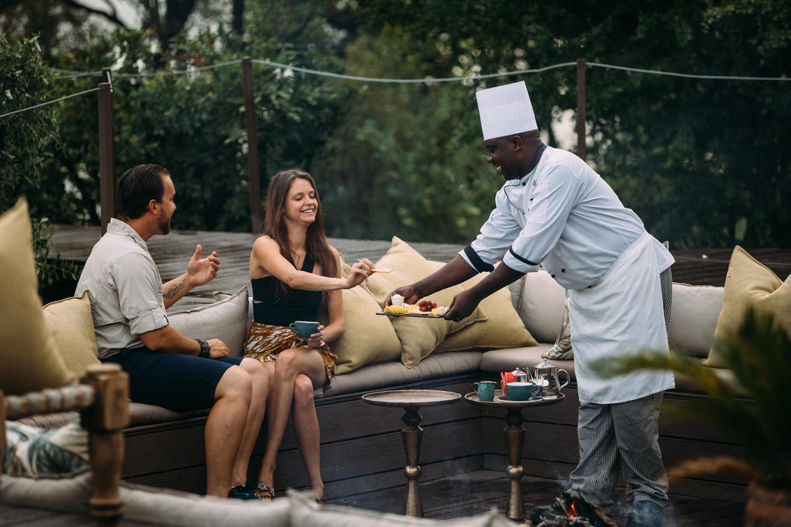 Snacks dans la zone principale du lodge