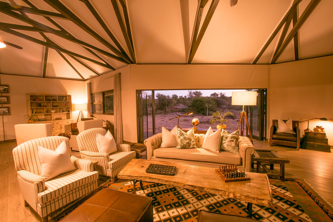 Old Drift Lodge, vue sur la rivière depuis le foyer principal