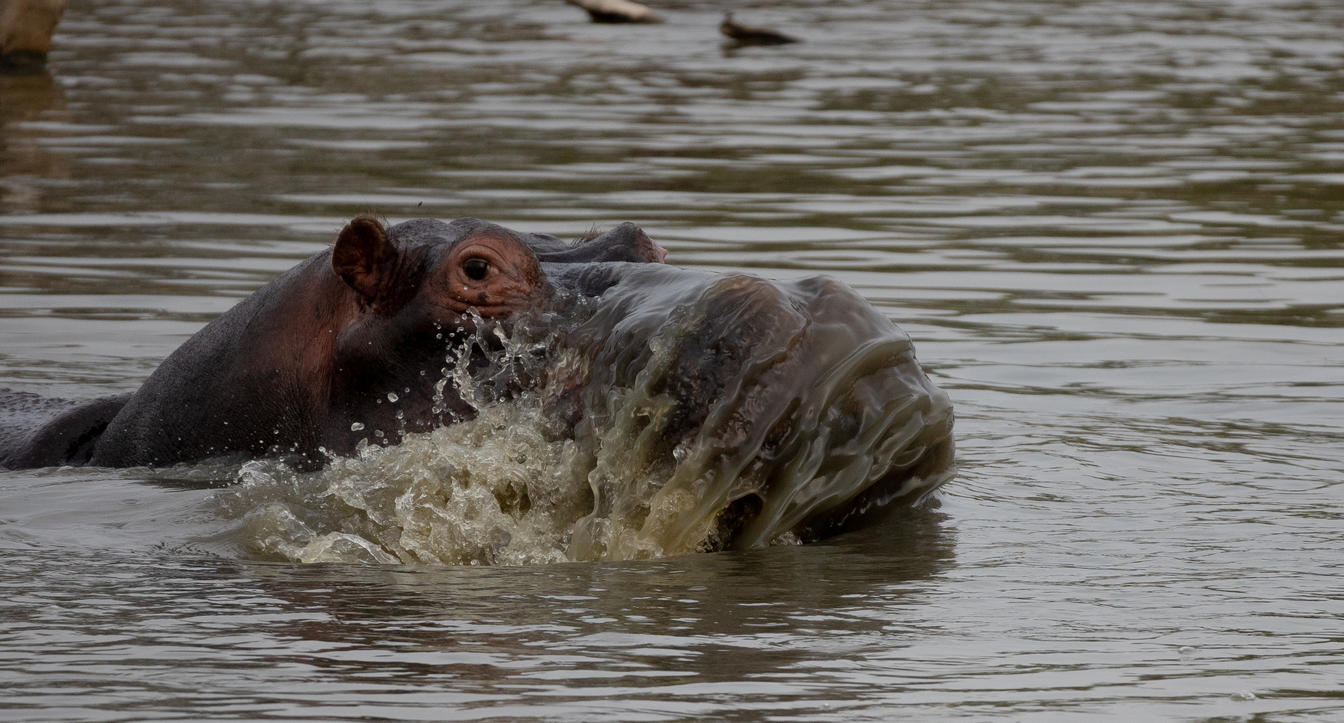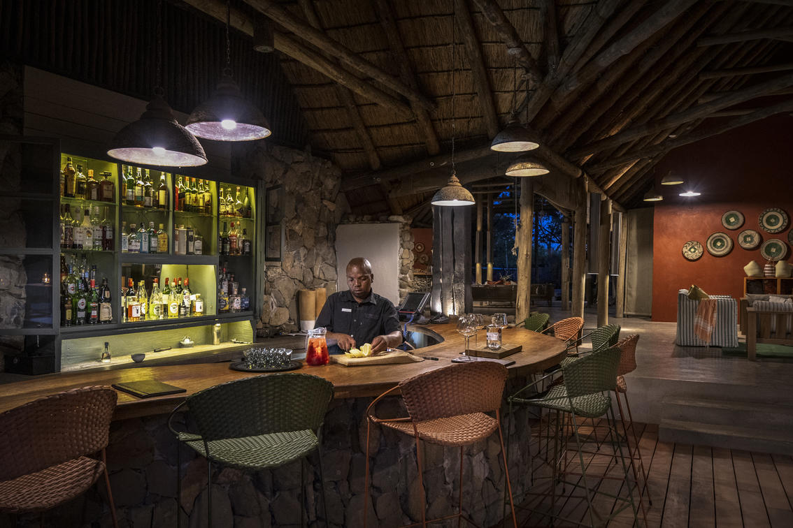 Lodge principal avec terrasse offrant une vue imprenable sur la rivière et le point d'eau