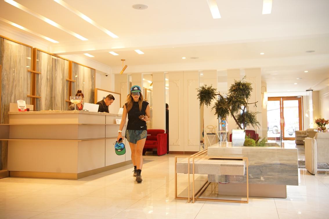 Le lobby de notre réception a été rénové, moderne et élégant. Avec des aires de repos confortables.