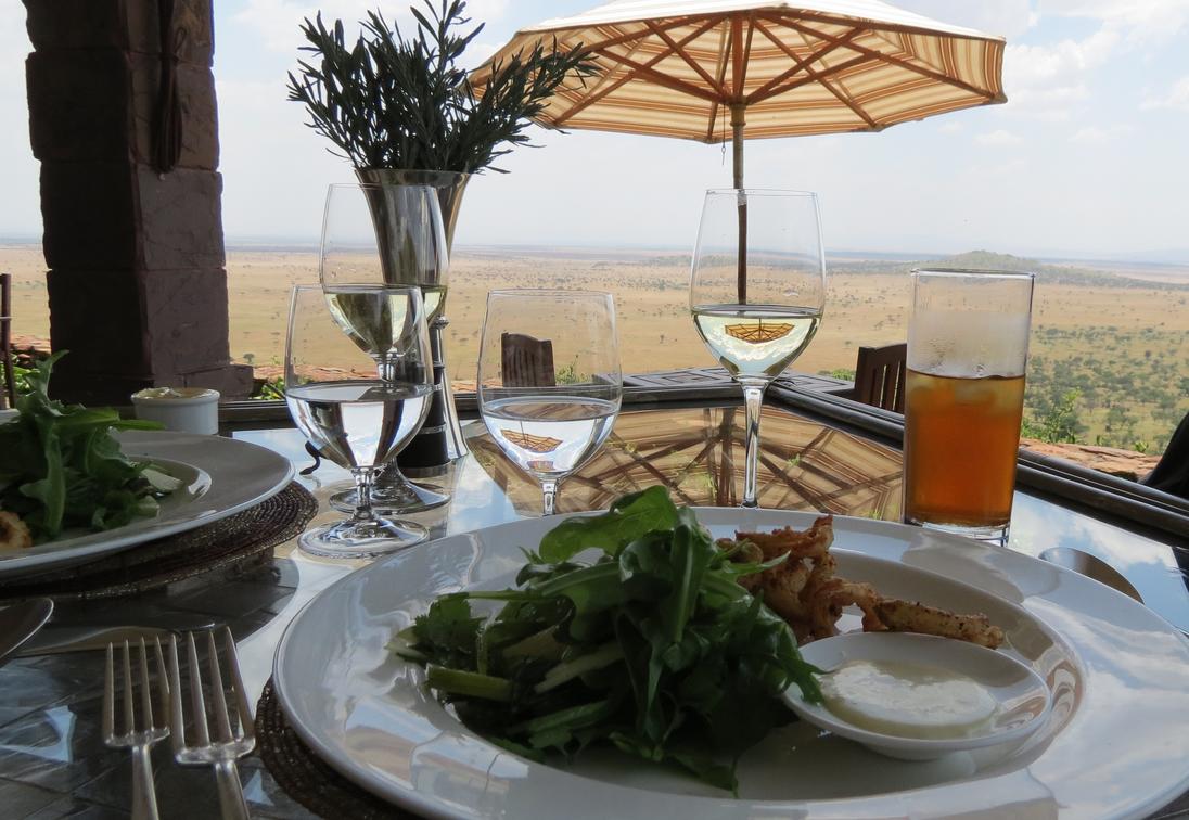 Véranda du Singita Sasakwa Lodge et vue sur le Serengeti