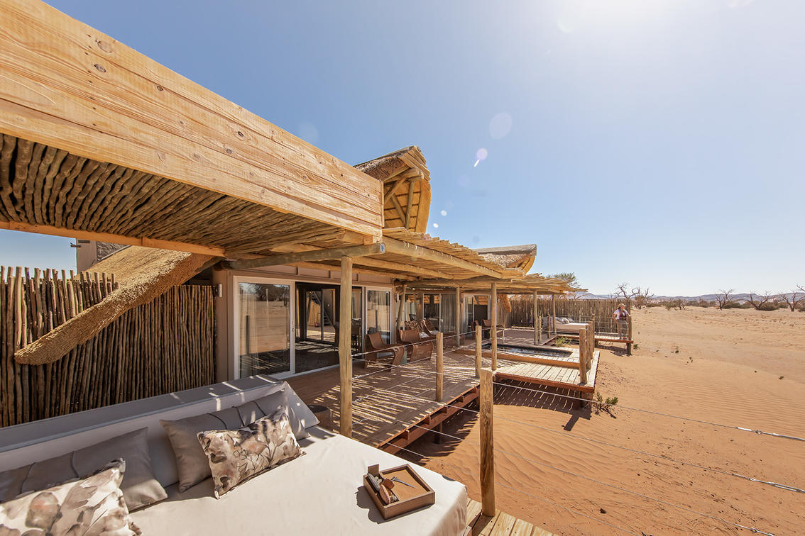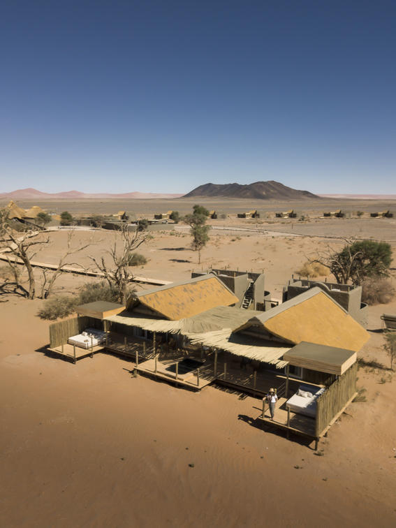Ispirato a Dead Vlei, il design delle 10 lussuose suite nel deserto è stato sapientemente ampliato per offrire un migliore flusso d'aria e l'uso di mattoni e vetro e un tetto di paglia migliora ulteriormente il controllo della temperatura. L'arredamento interno richiama la bellezza naturale del deserto circostante, replicato nella palette di colori e nelle opere d'arte.