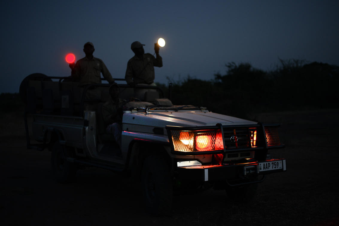 Sono disponibili anche unità notturne che utilizzano l'esclusivo protocollo dei faretti Chiawa Safaris, premiato, in cui un riflettore filtrato rosso viene utilizzato per trovare e guardare l'azione notturna, e un riflettore filtrato diffuso viene utilizzato per aiutare con la fotografia, assicurando che le unità notturne siano a basso impatto sulla fauna selvatica. che premia i nostri ospiti con un comportamento più naturale e migliori avvistamenti della fauna selvatica.