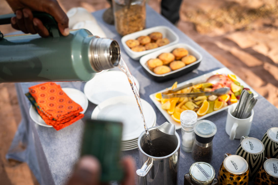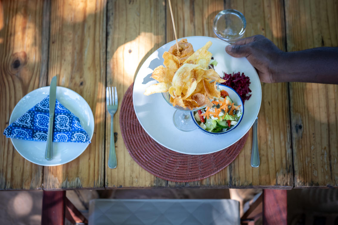 Da una ricca colazione nella boscaglia a un pranzo rilassante, seguito da un aperitivo al tramonto dorato e da una deliziosa cena sotto le stelle, ogni pasto è un'esperienza a sé stante.
