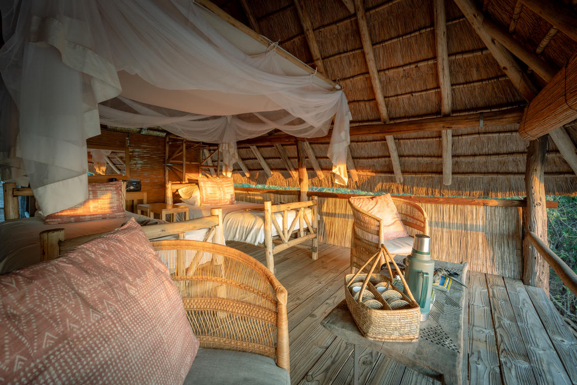 L'alloggio è composto da sette chalet sopraelevati, con facciata aperta e con due letti singoli, ognuno con bagno privato. Costruiti nello stile delle «palafittas» di Batonga (tradizionali capanne su palafitte sollevate su pali di mopane), gli chalet sono progettati per favorire il flusso d'aria naturale e mantenersi freschi durante l'estate, senza bisogno di aria condizionata. Le loro facciate aperte si affacciano sul lago, offrendo viste mozzafiato e la possibilità di osservare la fauna selvatica direttamente dal letto.