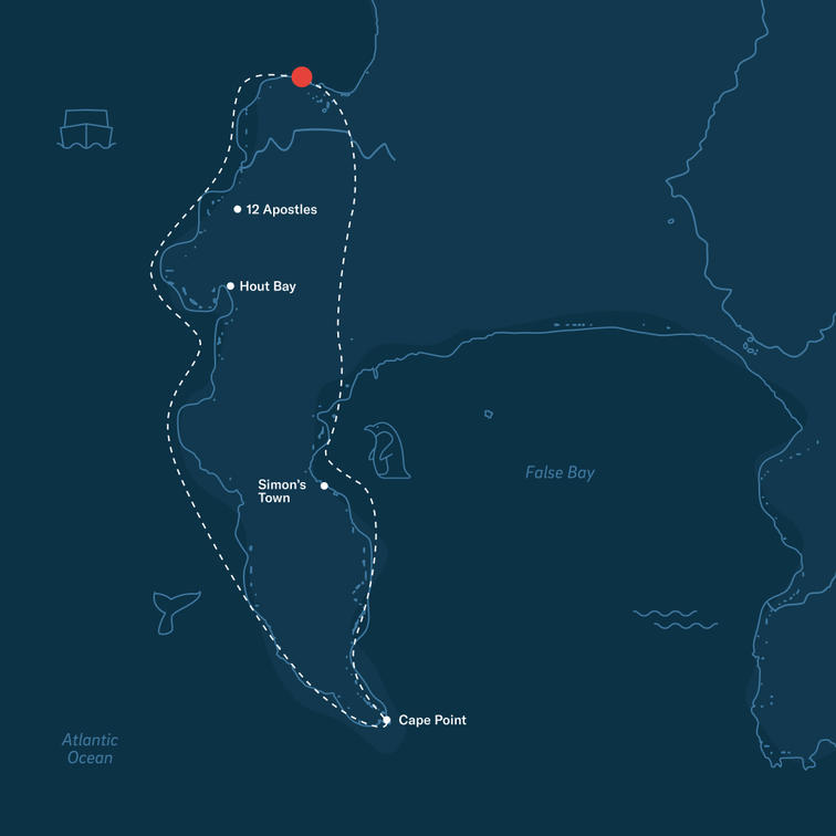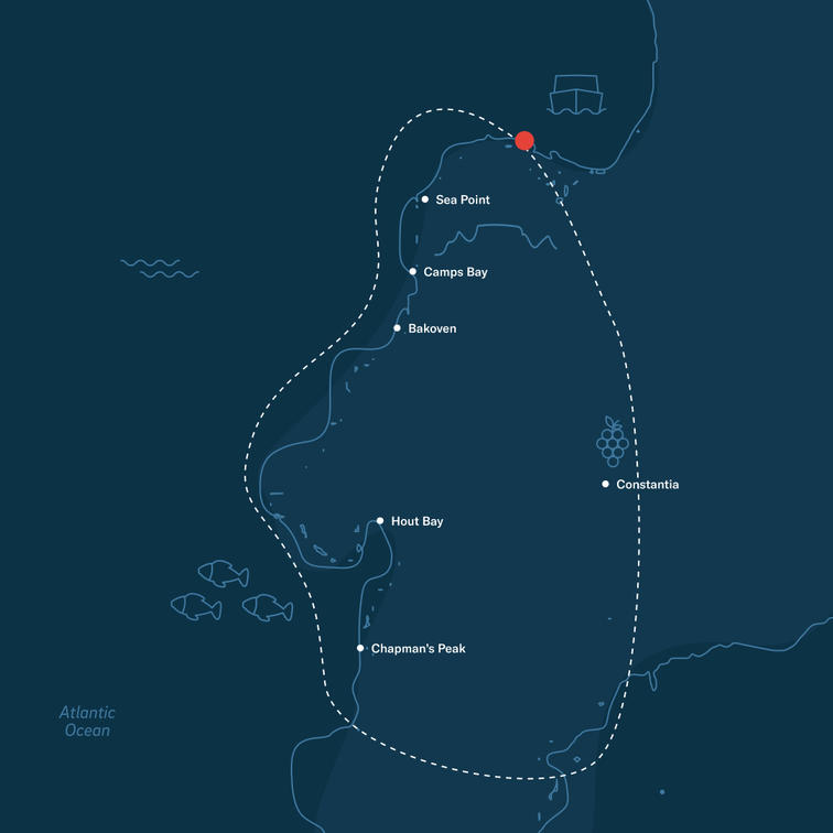 Il Chapman's «Peek» Tour (precedentemente noto come Atlantico) ti offre le viste sull'oceano preferite di Città del Capo. Sorvola il City Bowl, l'Oceano Atlantico, la Table Mountain e la Montagna dei Dodici Apostoli, prima di raggiungere le spiagge di Clifton e Camps Bay, Hout Bay e il pittoresco Chapman's Peak.