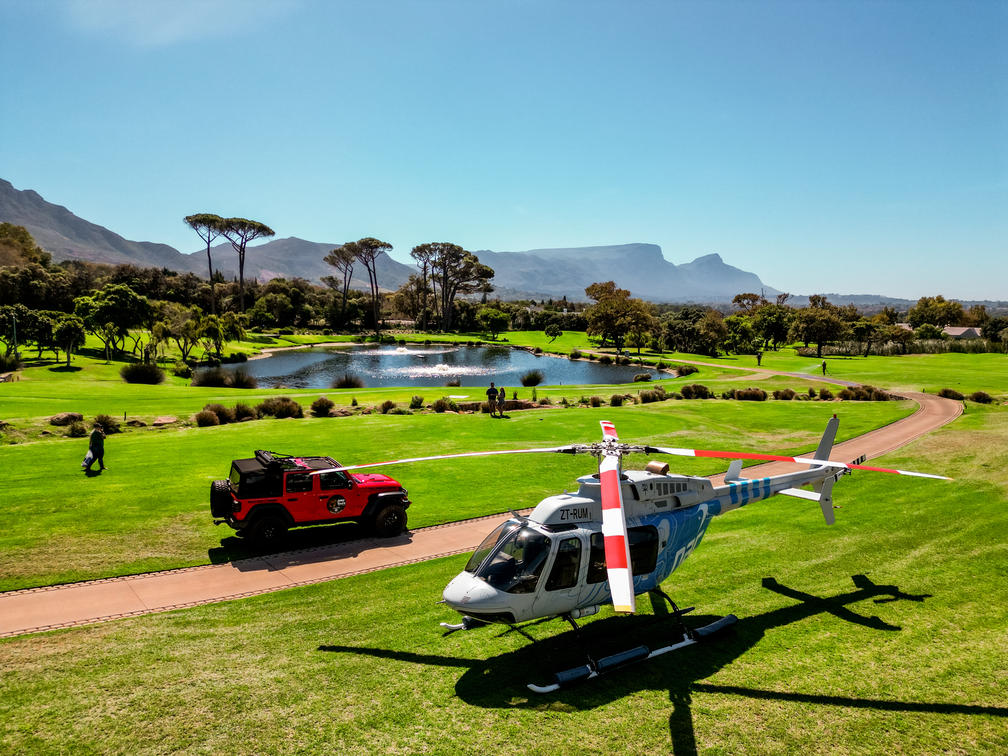 Fai un volo panoramico in elicottero verso Cape Winelands per un'emozionante esperienza in Jeep in cui sei invitato a sentire il vento tra i capelli in un'avventura a cielo aperto, navigando tra i vigneti e gli alti e bassi, fermandoti in punti panoramici da cui apprezzare i punti panoramici. Goditi una degustazione di vini e un delizioso picnic mentre ti immergi nell'atmosfera della fattoria. Dopo un piacevole pranzo, goditi un viaggio panoramico verso il tuo hotel, oppure scegli di giocare sul posto e rientrare in aereo.