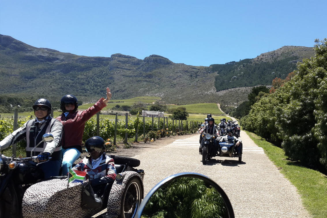 Partendo da NAC Helicopters Cape Town presso il V&A Waterfront, sorvolerai la splendida Penisola del Capo fino alla Constantia Valley, la più antica regione vinicola di Città del Capo. All'atterraggio nell'azienda vinicola di tua scelta, concediti un bicchiere di buon vino, abbinato a prodotti artigianali del Capo. Esplorate la tradizionale casa padronale e i vigneti. Dopodiché, indossa una giacca di pelle morbida, un casco e occhiali per un emozionante giro in sidecar in moto d'epoca lungo le strade alberate di Constantia verso la costa atlantica e di nuovo verso il V&A Waterfront.