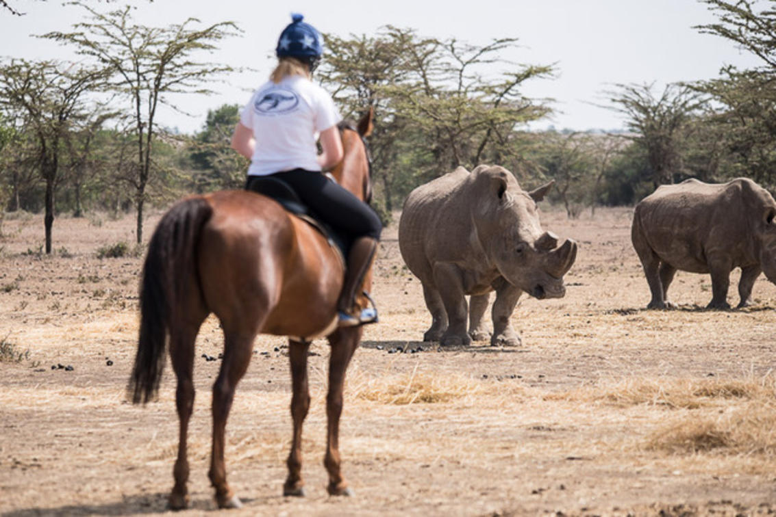 La possibilità di cavalcare tra le specie a rischio di estinzione, compresi i rinoceronti bianchi del nord, è un'esperienza unica nella vita. Questa zona priva di predatori è meravigliosa da esplorare a cavallo, con la possibilità di incontrare anche varie altre specie in via di estinzione come il rinoceronte bianco meridionale, la zebra di Grevy o l'alcelafo di Jackson.