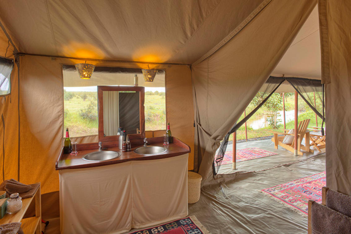 La tenda familiare dell'Ol Pejeta dispone di una sala comune centrale che unisce la camera con letto king size e la camera doppia con letti singoli. Entrambe le camere sono dotate di bagno privato con docce idrauliche e servizi igienici con sciacquone. Le verande individuali offrono il luogo perfetto per trascorrere un pomeriggio in totale privacy, osservando gli animali che vanno e vengono lungo la riva del fiume.