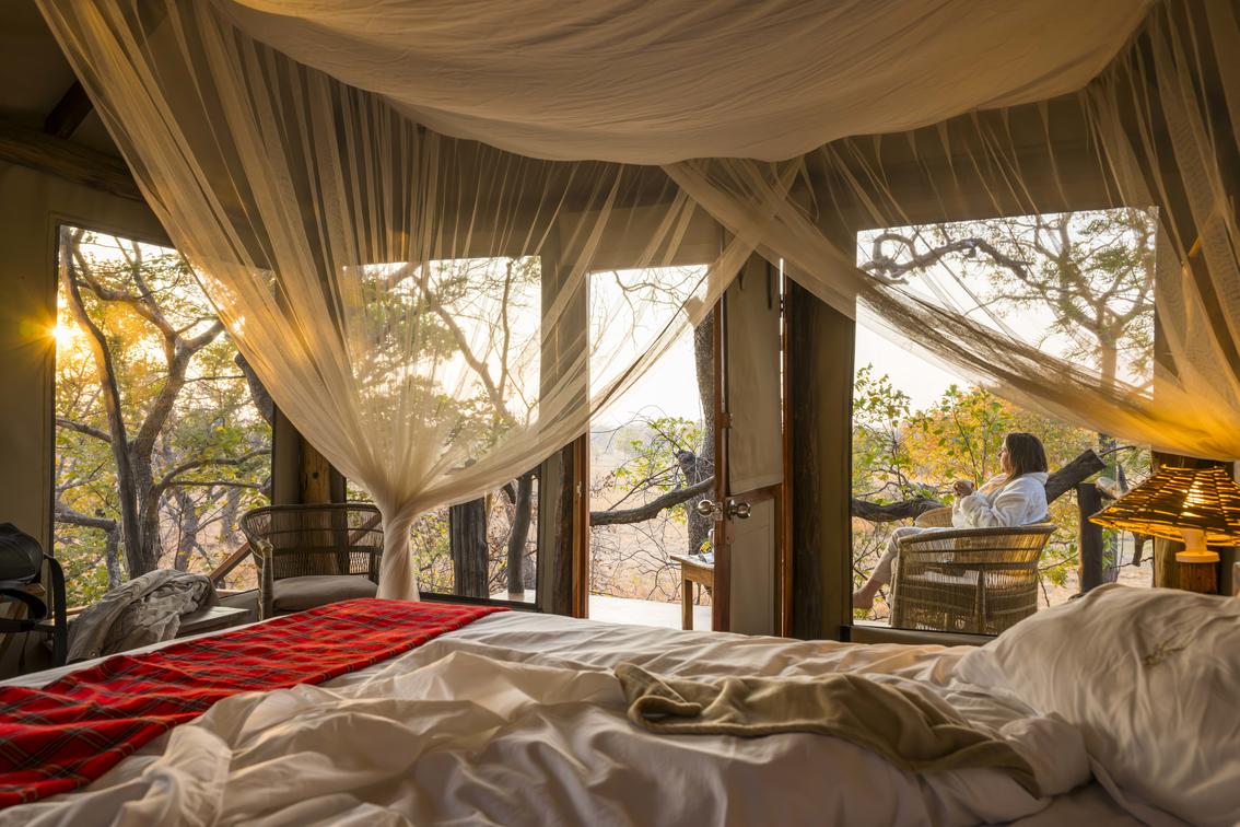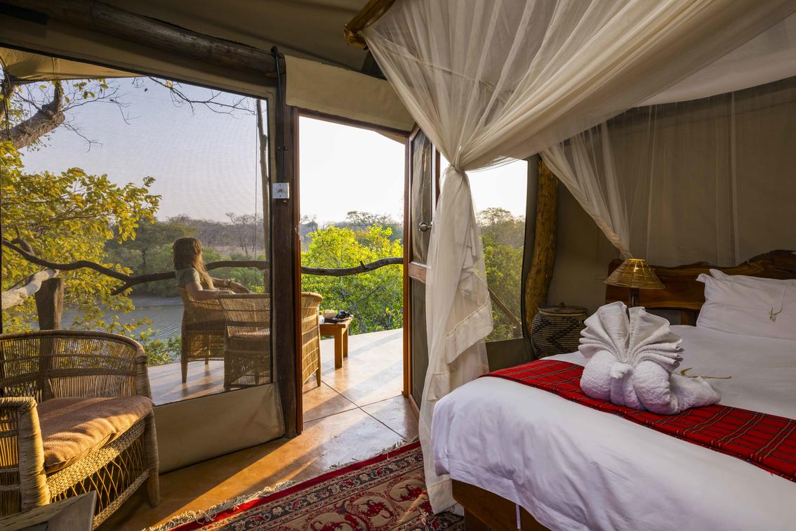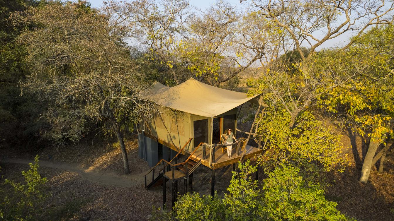 Gli ospiti alloggeranno in una delle nostre 4 tende safari arredate. Tre delle tende si affacciano sulla laguna e una ha una vista sulla pianura dietro il campo, offrendo opportunità uniche per avvistare la fauna selvatica. Ogni tenda safari ha un bagno privato e una veranda che offre una vista unica dalla chioma degli alberi.