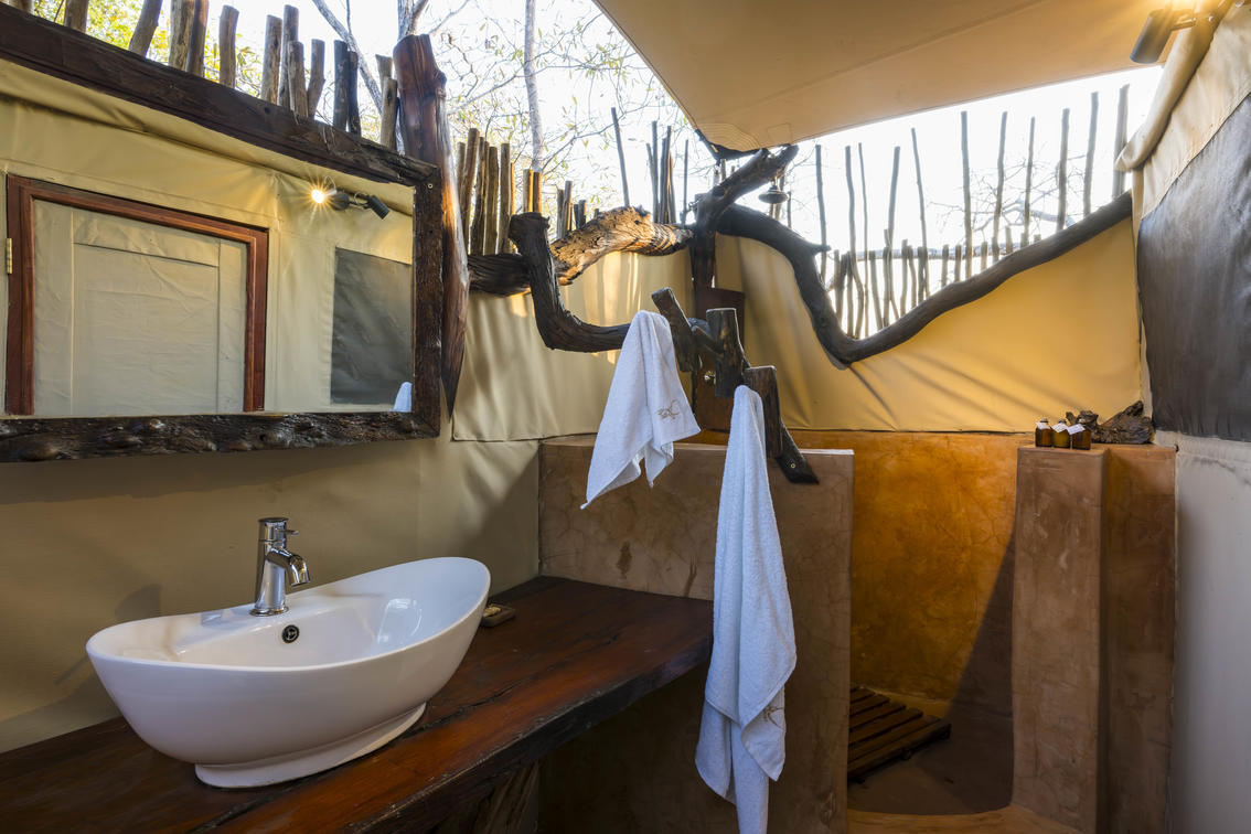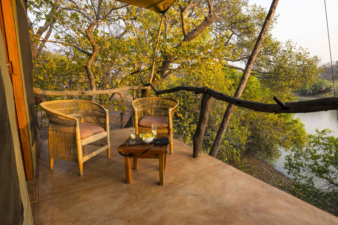 Le tende con camera doppia vantano una vista spettacolare sulla laguna e offrono anche un punto panoramico eccezionale con vista sulle pianure dietro il campo, offrendo agli ospiti opportunità indimenticabili di avvistare la fauna selvatica. Ogni tenda include un bagno privato e una veranda privata, che vi invitano a immergervi nella bellezza della chioma degli alberi e della natura selvaggia circostante.