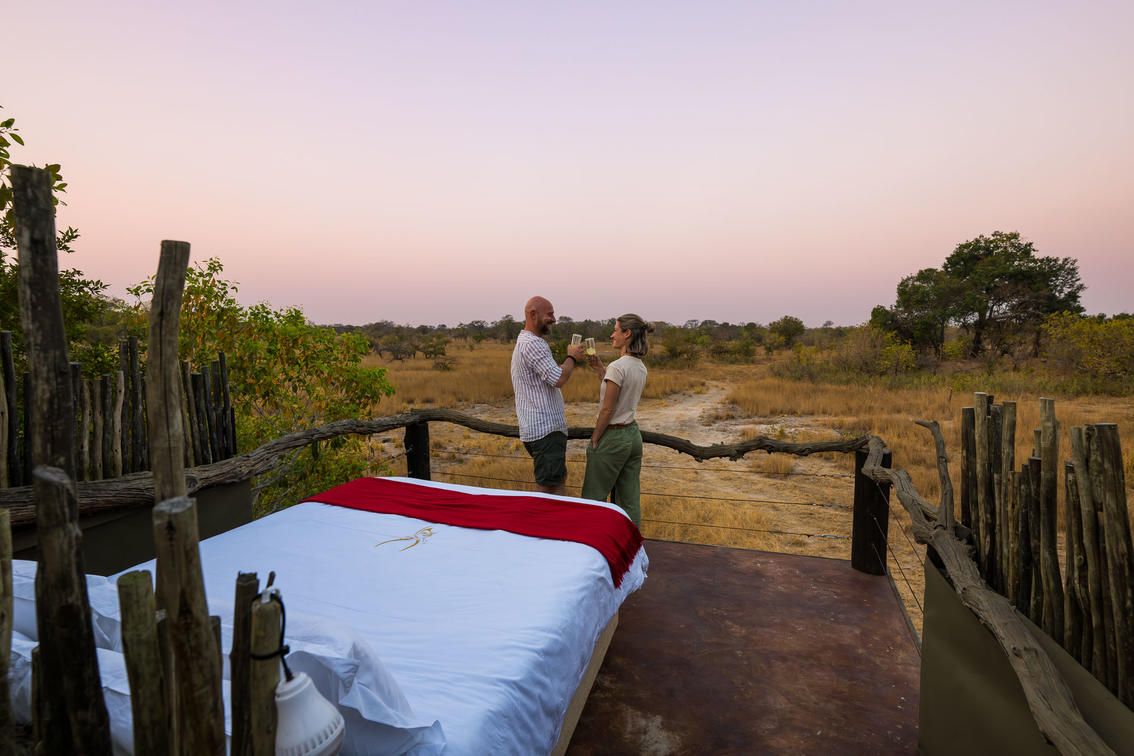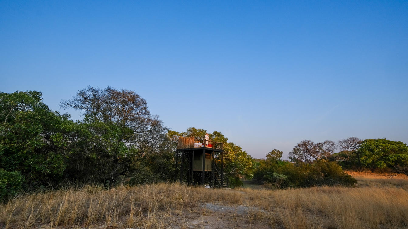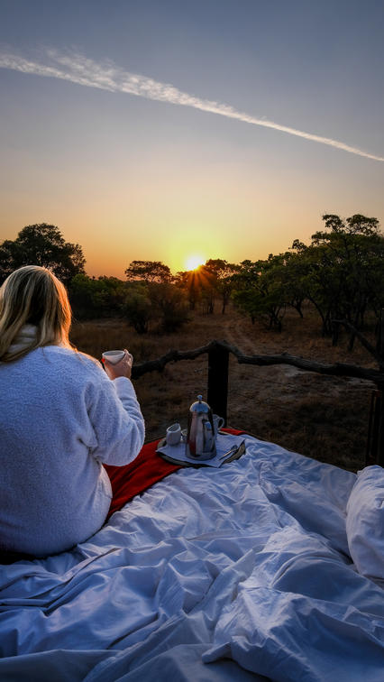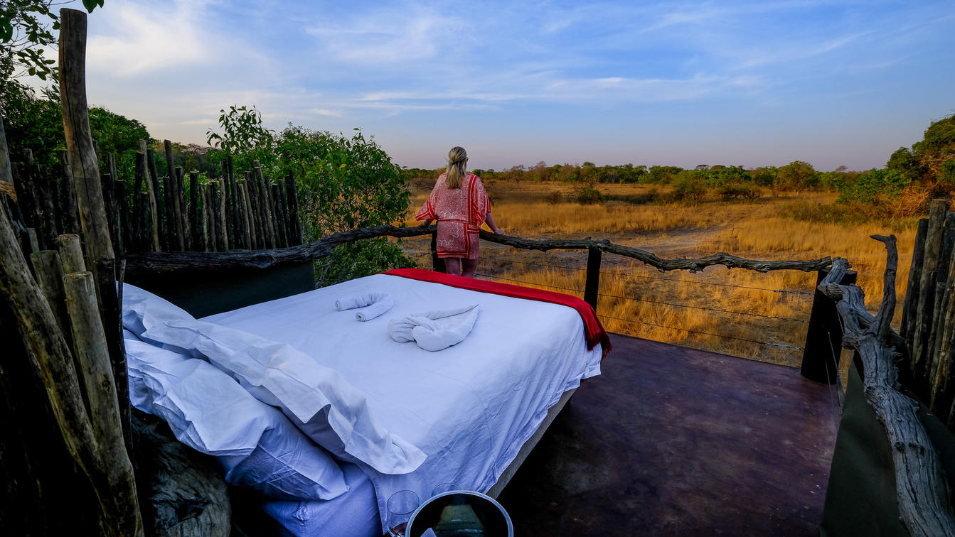 Immagina un comodo letto sistemato su una piattaforma rialzata, circondato dalla vasta distesa del cielo notturno africano. Il letto è realizzato con fresche lenzuola bianche e soffici cuscini che invitano a sprofondare e rilassarsi. I suoni della macchia africana ti circondano, dal fruscio delle foglie al frinire dei grilli. È un'esperienza davvero magica che non dimenticherai mai.