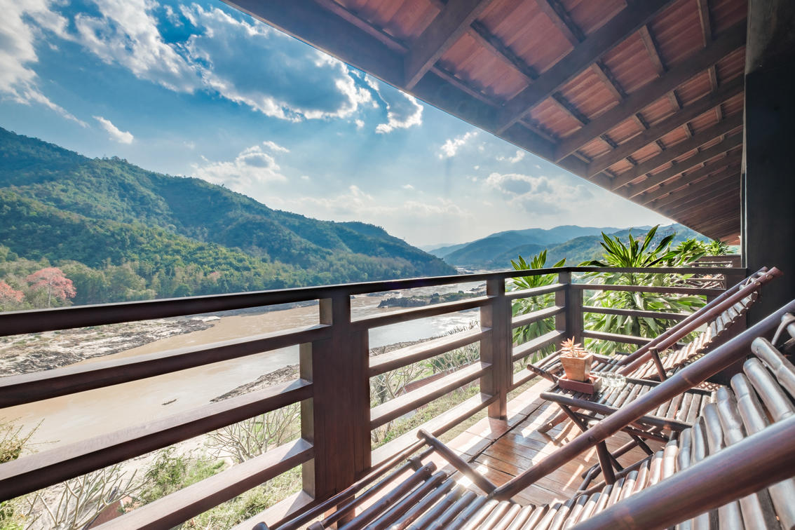 Ogni camera dispone di un ampio balcone privato con tavolino e sedie a sdraio, affacciato sul Mekong. Da questo punto di vista, si ha una splendida vista delle ultime barche che tornano al porto, mentre il sole cala dietro le montagne sul bordo del fiume.