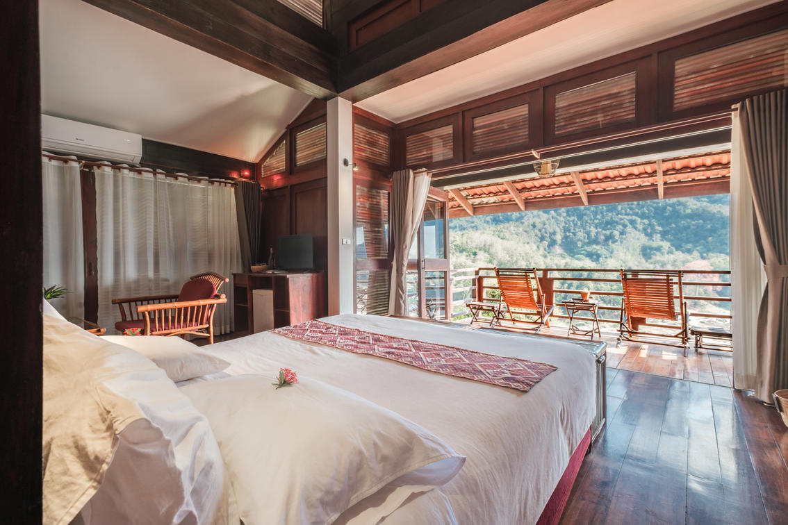 Il Lodge propone 20 camere superior, in due edifici confinanti con il fiume Mekong. Decorate con bambù, arazzi da parete Hmong e pavimenti in parquet in palissandro, hanno una vera e propria atmosfera tradizionale. I bagni interni sono provvisti di docce calde.