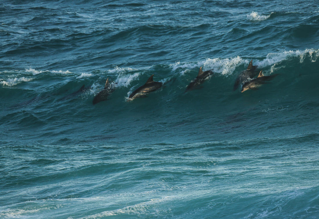 Goditi l'osservazione dei delfini a terra direttamente dalla tua camera. I delfini fanno surf sulle onde tutto l'anno.
