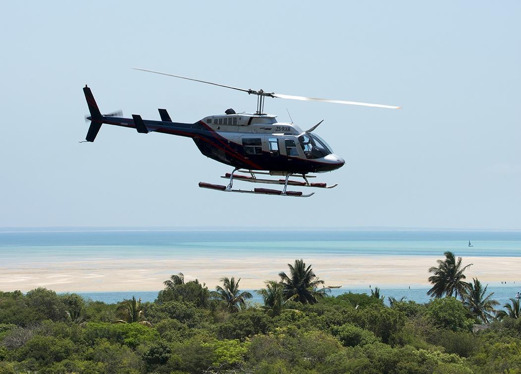 Vivi il Mozambico dall'alto. Sali a bordo di un elicottero e vola lungo la costa dell'isola di Benguerra e ammira le acque cristalline e le spiagge bianche incontaminate con una vista panoramica.