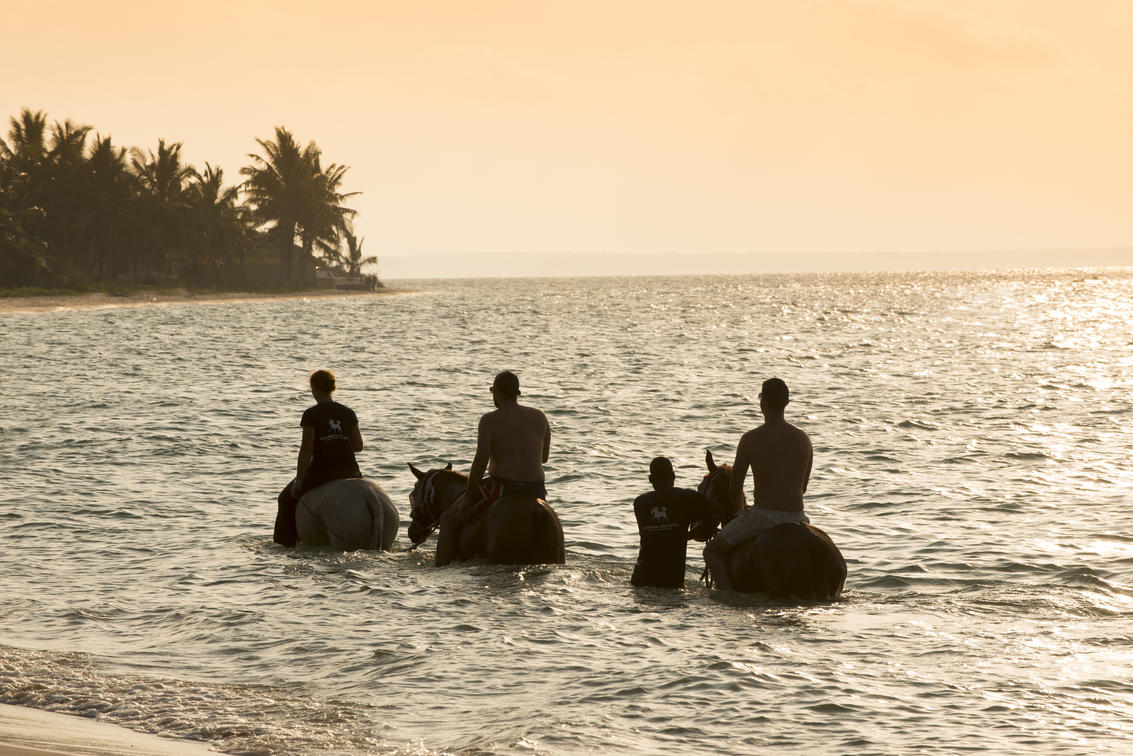 Gli appassionati di equini di tutte le età e di tutti i livelli di equitazione avranno l'opportunità memorabile di godere di una divertente avventura di nuoto con cavalli, sull'isola & Beyond Benguerra. Vestiti per l'occasione, con il tuo costume da bagno, e cavalca nuda nelle acque azzurre, fluttuando tra le onde sulla cima del tuo monte. Aspettatevi schizzi abbondanti, e attacchi di risate, come i cavalli amano assolutamente scherzare nell'oceano. In seguito, salta giù dal tuo destriero e lascia loro godere di un meritato rotolo sulla spiaggia. Questa avventura da 30 a 45 minuti consente un massimo di 4 ospiti per nuotata ed è perfetta come attività autonoma o può essere aggiunta dopo una più ampia esplorazione a cavallo dell'isola. L'attività di nuoto con cavalli è stagionale e dipende dal tempo e dalla marea.