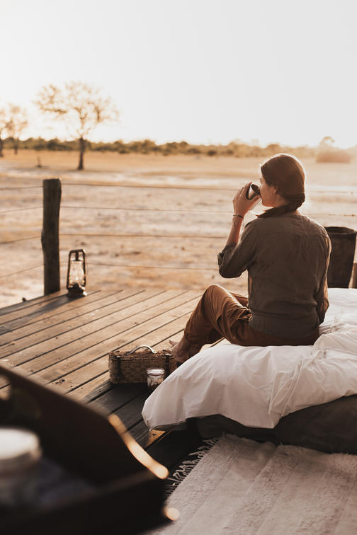 Dormi su una piattaforma romanticamente illuminata sotto i cieli cristallini africani: una serata incantata mentre ti sdrai al sicuro nel tuo sonno rialzato, coperto da una coperta di un miliardo di stelle, sognando nel «mezzo del nulla»...