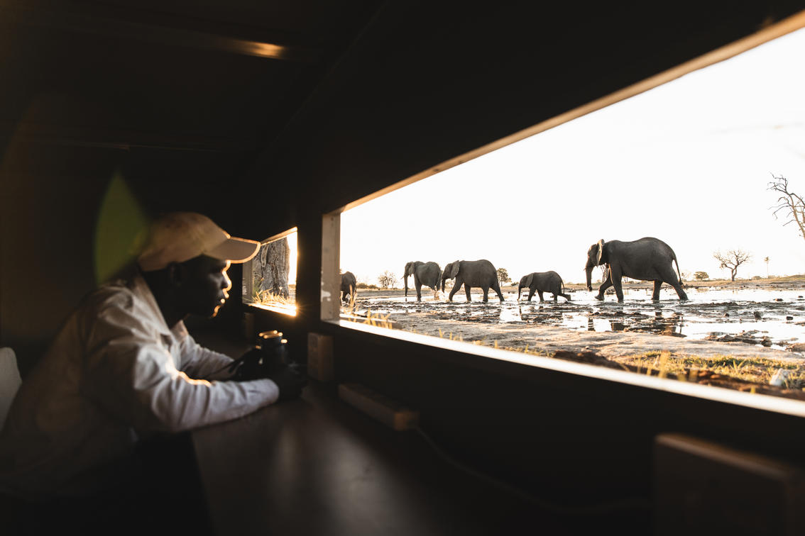 Hide Out In The Wild - C'è qualcosa di incredibilmente emozionante nell'essere nascosti alla vista mentre animali come gli elefanti vanno avanti la loro giornata, sguazzando nelle acque e bevendo, completamente ignari della tua presenza. Il nascondiglio affondato di fronte al campo, è il luogo ideale per allestire un pomeriggio, un luogo segreto per osservare il via vai della fauna selvatica. Tieni pronti i libri sugli uccelli, la macchina fotografica e il binocolo...