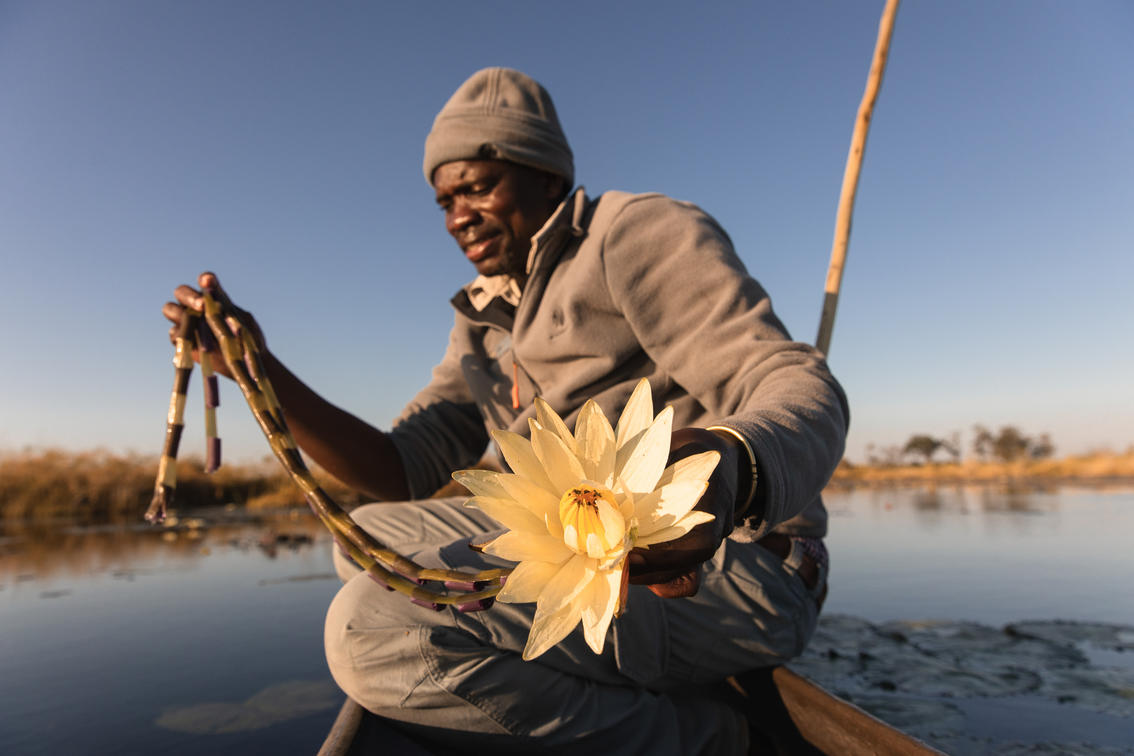 Non c'è modo migliore di osservare la fauna selvatica ed esplorare i canali cristallini del Delta dell'Okavango che con il tradizionale mokoro (canoa piroga). Spesso fornisce avvistamenti ravvicinati e personali di minuscole rane di canna dipinte e gloriose ninfee.