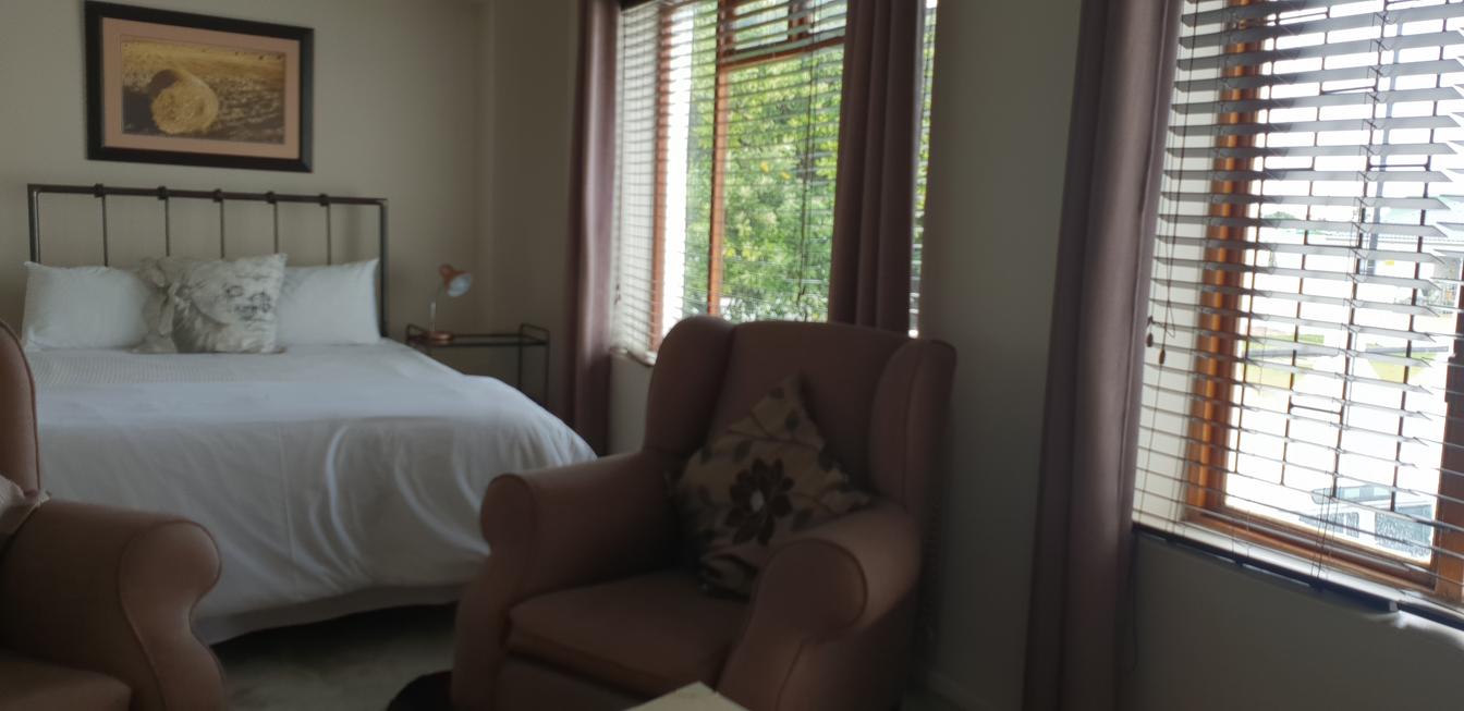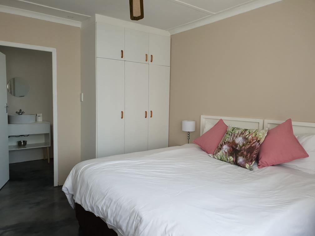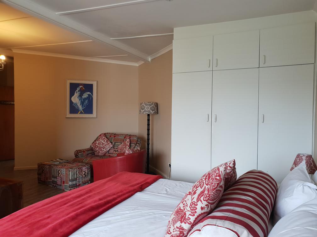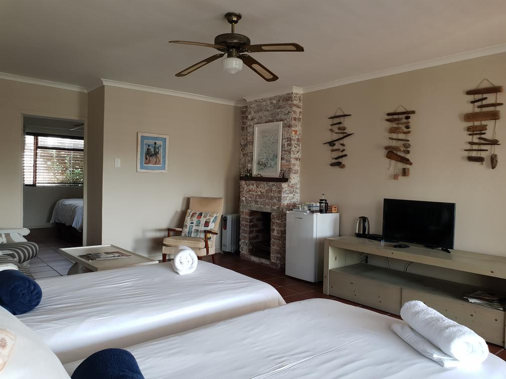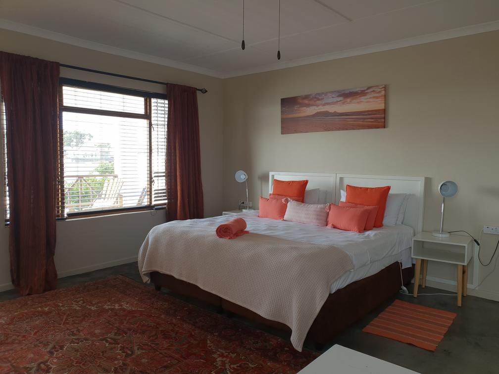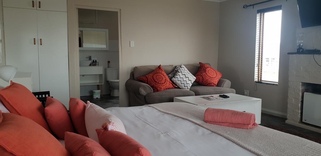 Suite matrimoniale al piano superiore con salotto e doppio bagno en-suite. La nostra camera ammiraglia con il suggerimento dell'Africa e veranda con vista privata che offre viste sulla baia Walker e sulle montagne di Overberg. Climate, TV, cassaforte integrata, WIFI.