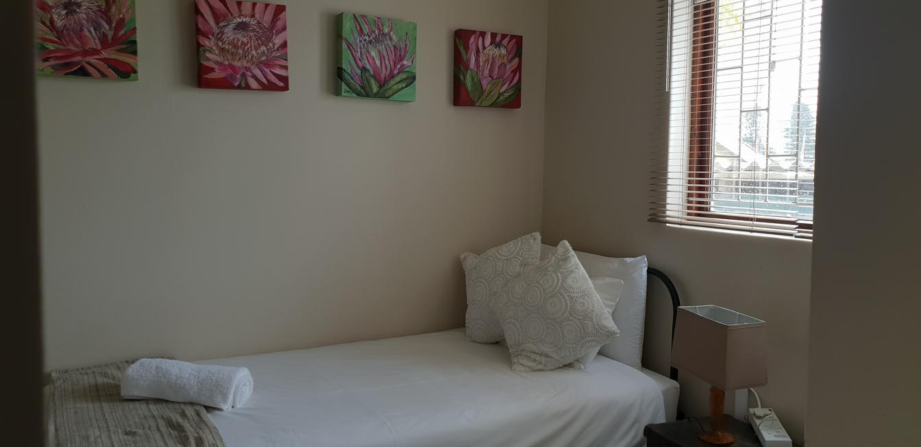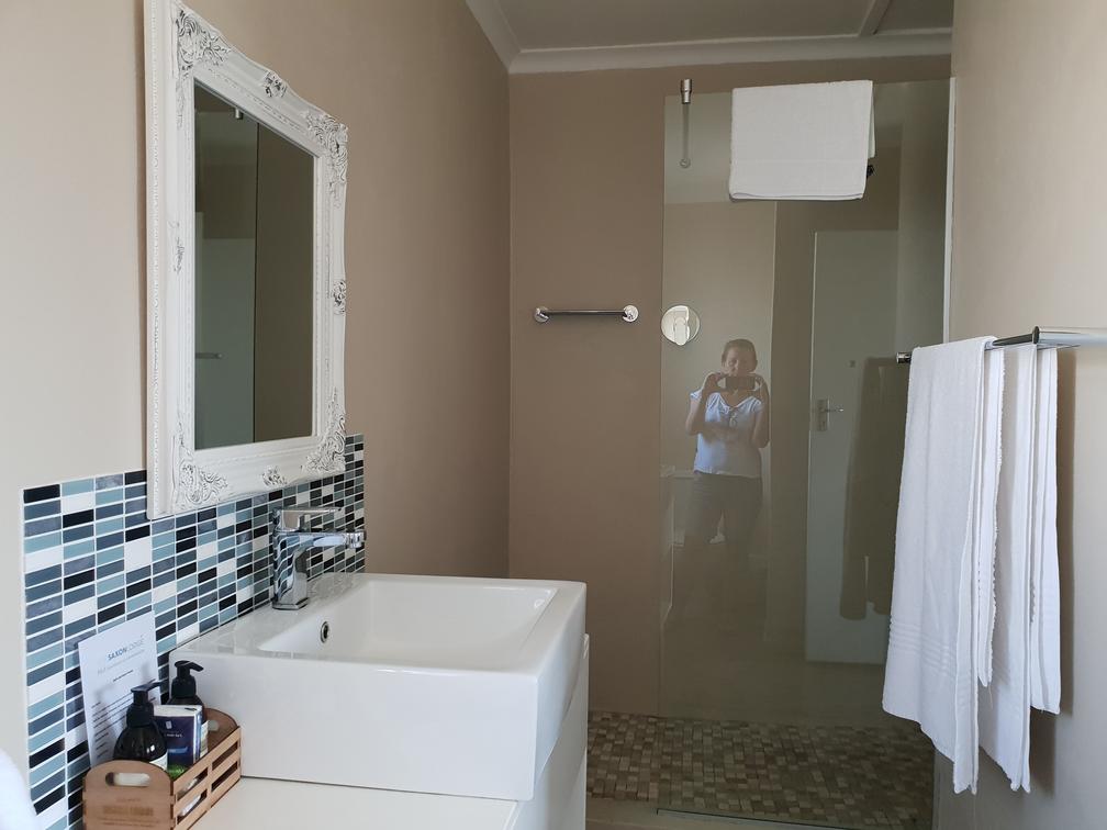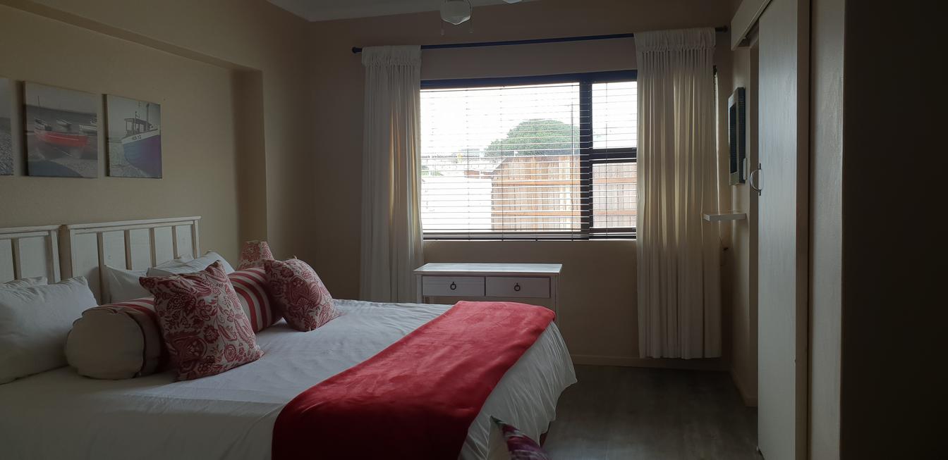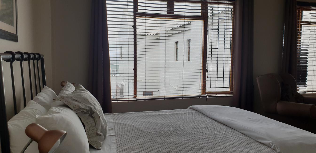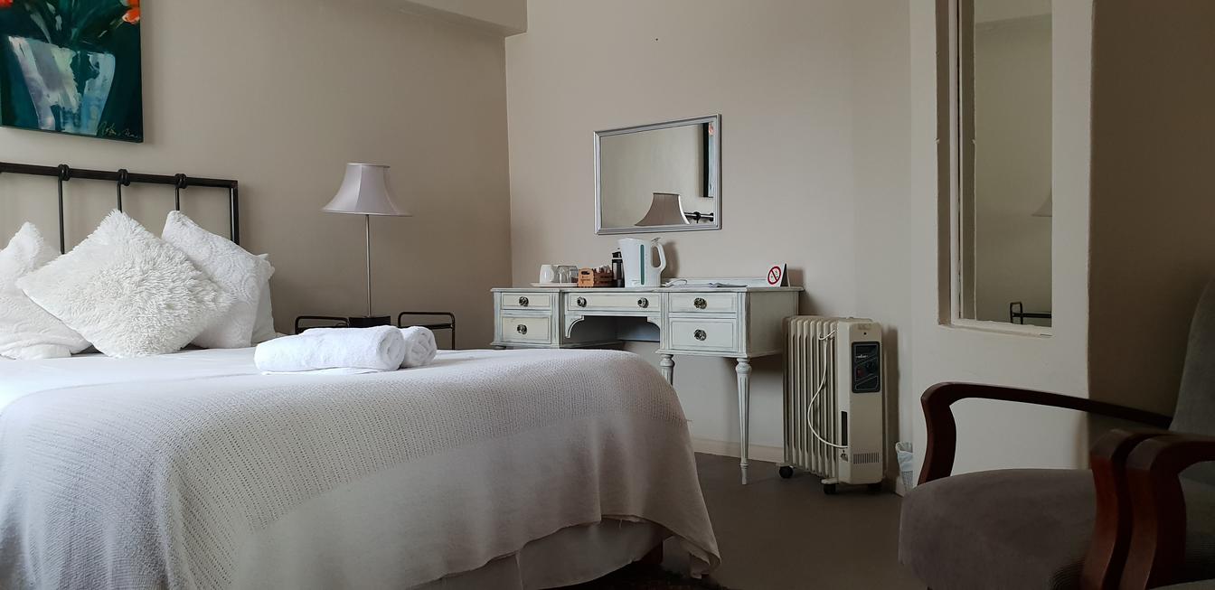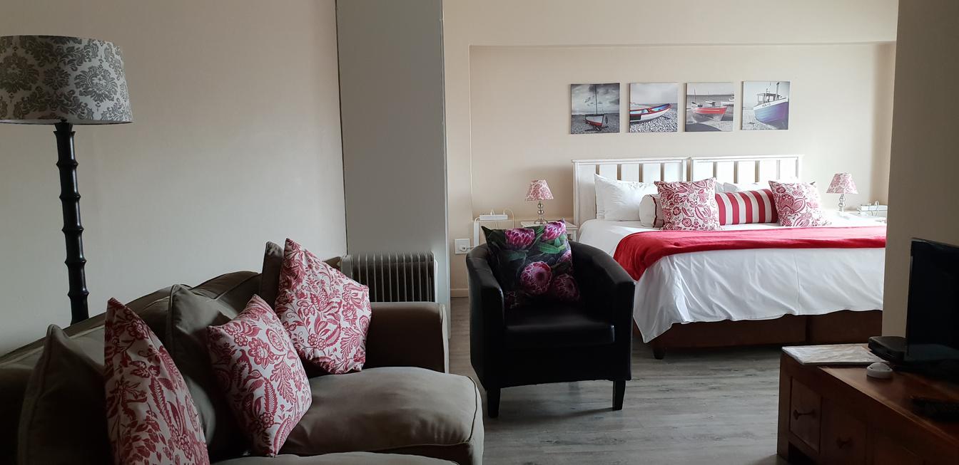 Suite matrimoniale al piano superiore con salotto e doppio bagno en-suite. La nostra camera ammiraglia con il suggerimento dell'Africa e veranda con vista privata che offre viste sulla baia Walker e sulle montagne di Overberg. Climate, TV, cassaforte integrata, WIFI.