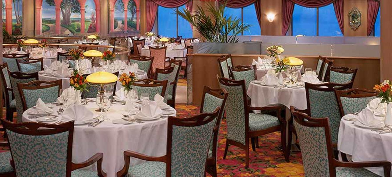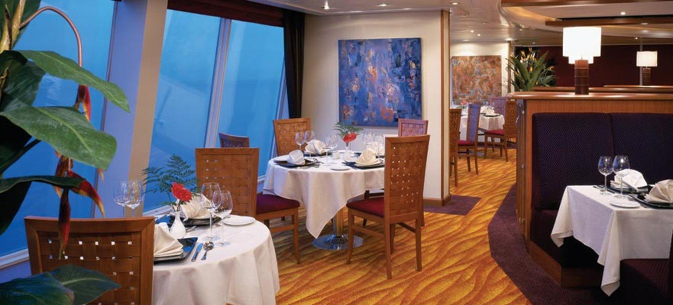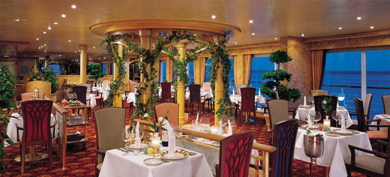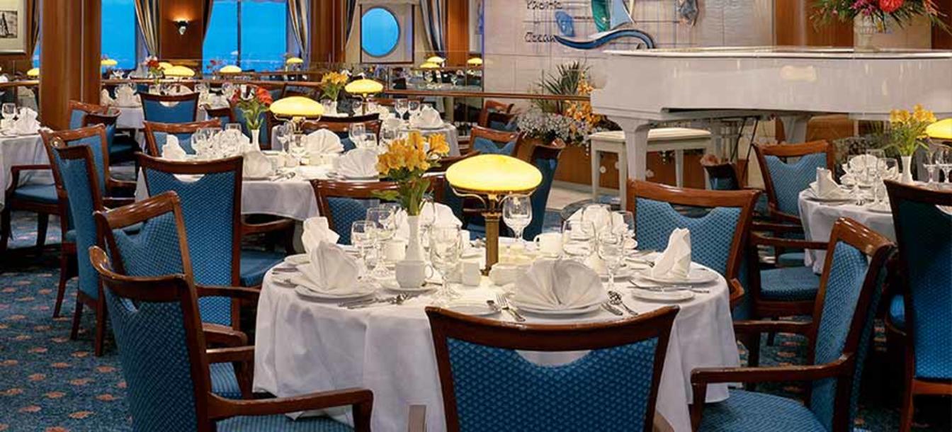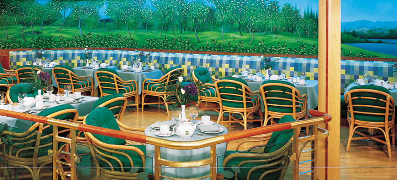 Il Garden Café serve gratuitamente la colazione, il pranzo e la cena, e le vetrate a tutta altezza regalano viste pittoresche sull'oceano. Le stazioni di azione includono carne intagliata, pasta su ordinazione, omelette, cialde, gelato soft serve e molto altro ancora.
