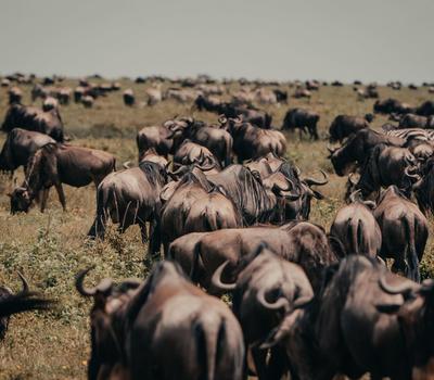 Oltre un milione di gnu compiono un viaggio di andata e ritorno di quasi 1.000 km all'anno attraverso il Serengeti