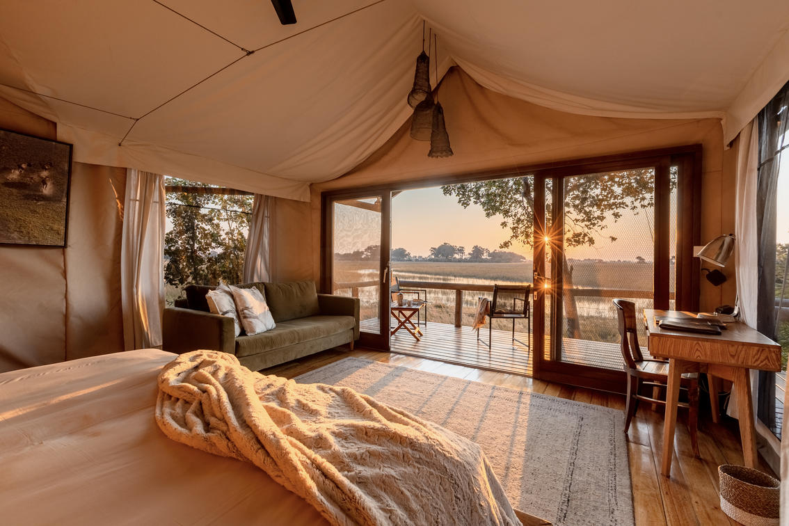 Jacana è un angolo remoto ed esclusivo del paradiso dell'Okavango, con solo cinque suite per gli ospiti con tende.