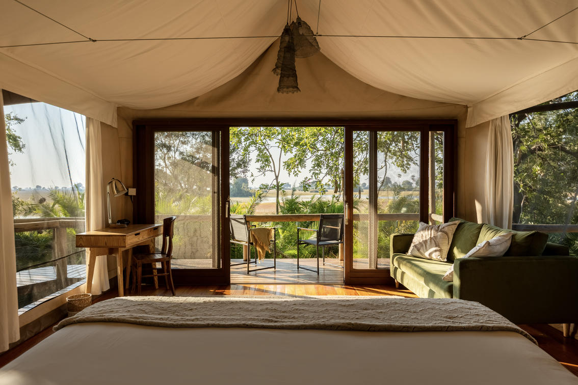 Le tende per gli ospiti di Jacana dispongono di ponti rialzati per una vista ottimale sugli splendidi dintorni.