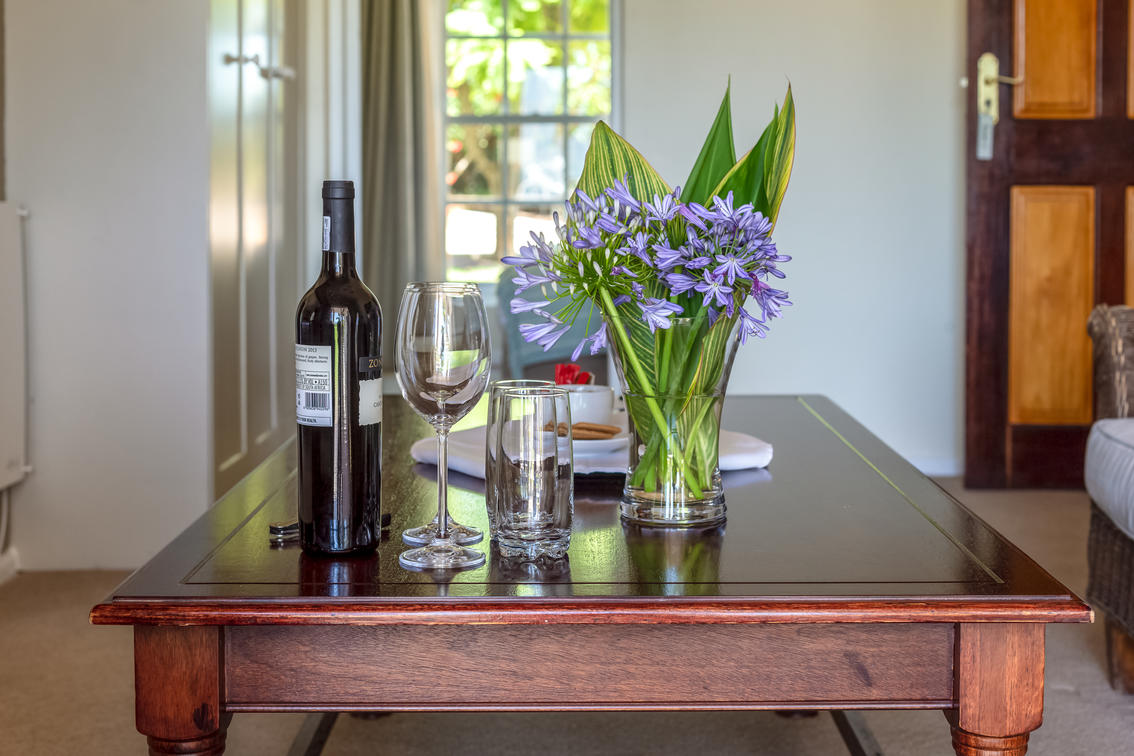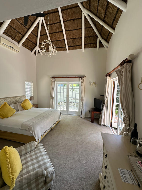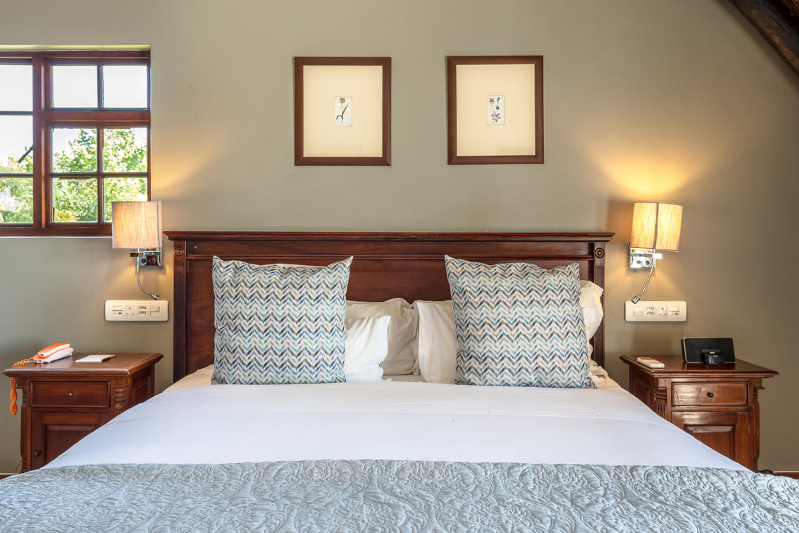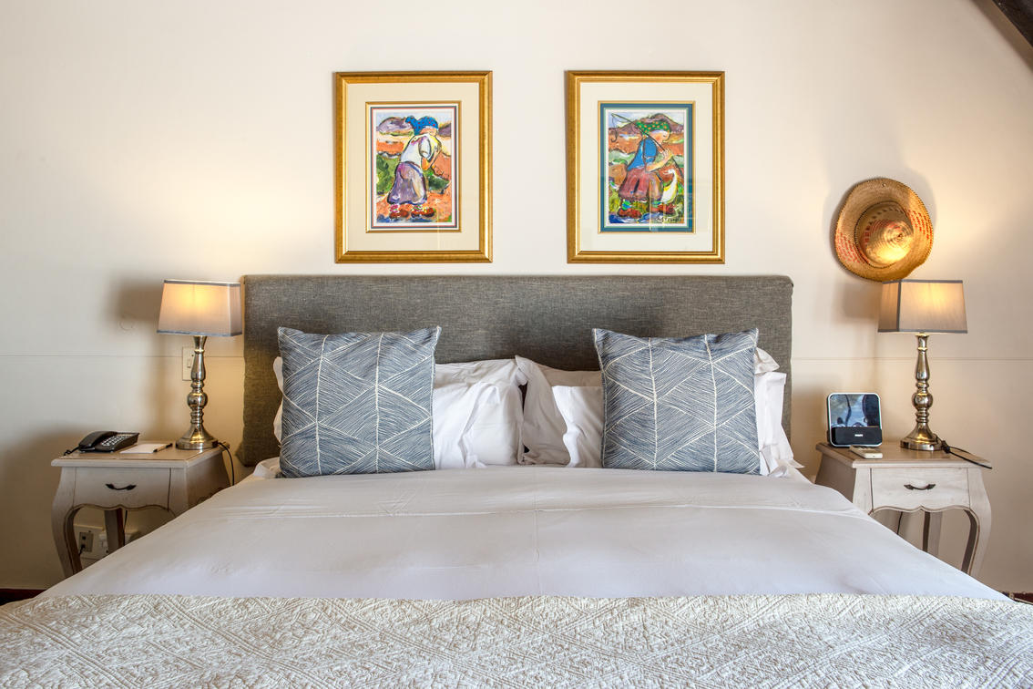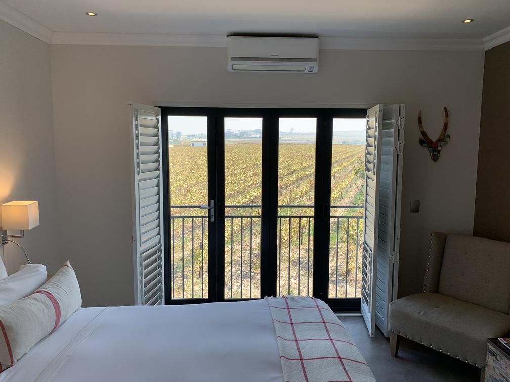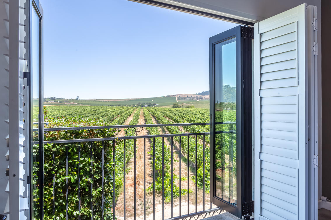 Onze prachtige wijngaard kamers zijn gelegen op de eerste verdieping, hebben extra lengte King Size bedden, badkamer en-suite met bad en aparte douche met eigen Frans balkon van waaruit u kunt genieten van het uitzicht over de wijnlanden en spectaculaire sundowners