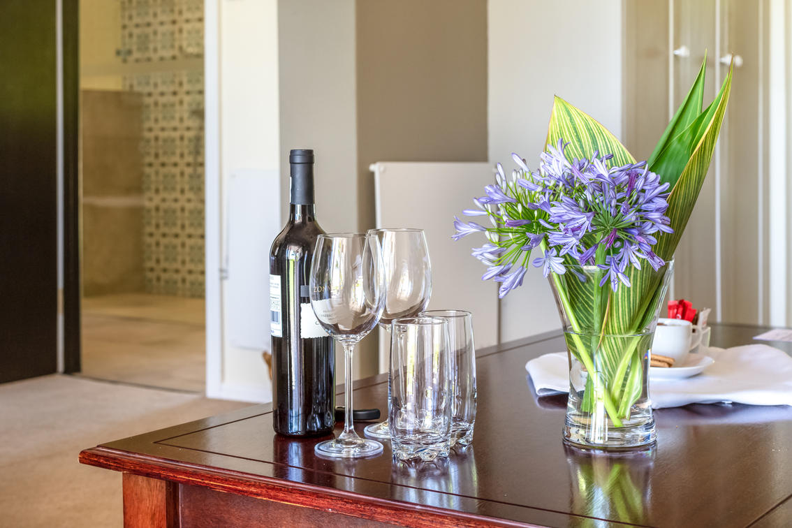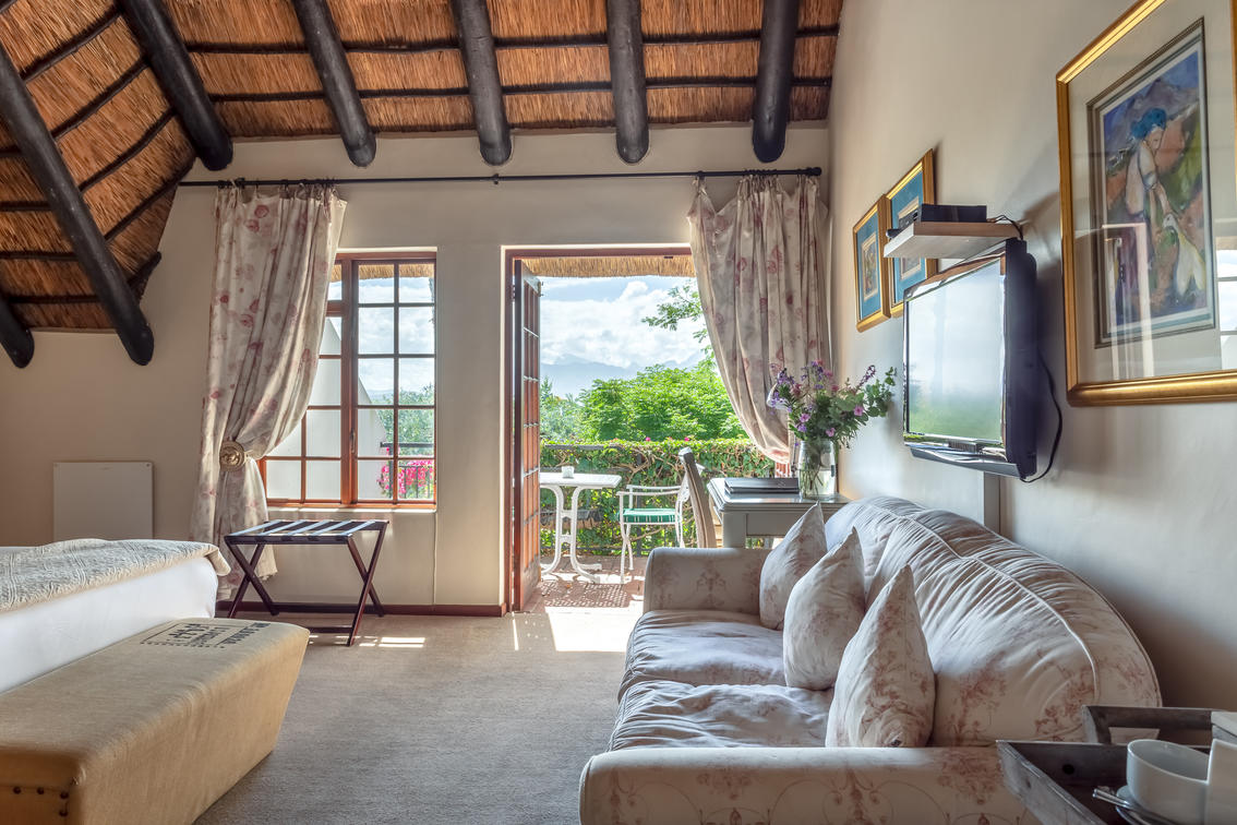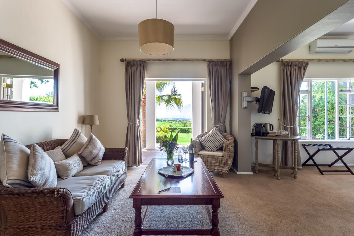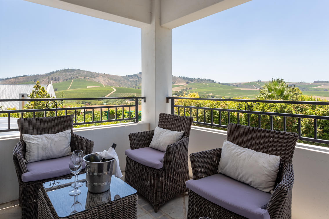 Al onze Superior kamers bevinden zich op de 1e verdieping en hebben een kingsize bed, aircon, badkamer en-suite met bad en aparte douche en een eigen balkon met prachtig uitzicht over de wijngaarden en bergen van Stellenbosch Hill