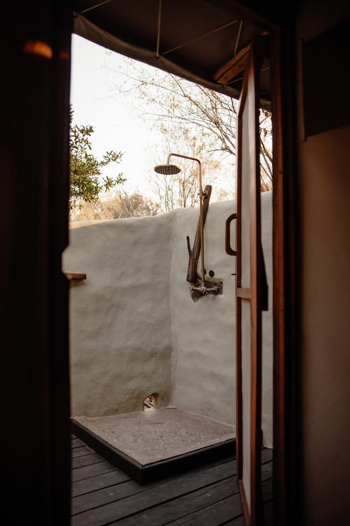 Deze kamer beschikt over een ruime regendouche met warm en koud stromend water en combineert privacy met uitzicht over de rivier. Alle voorzieningen die u nodig heeft na een dag in de wildernis.