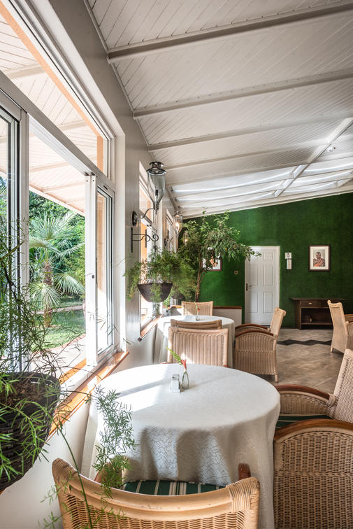 Met een prachtig uitzicht op ons verwarmde zwembad is het ideaal voor lunches en cocktailparty's.