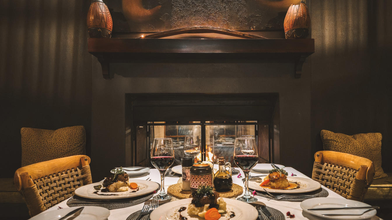 Hlosi Game Lodge heeft een eigen restaurant met uitzicht op de dam met onze resident Hippo's