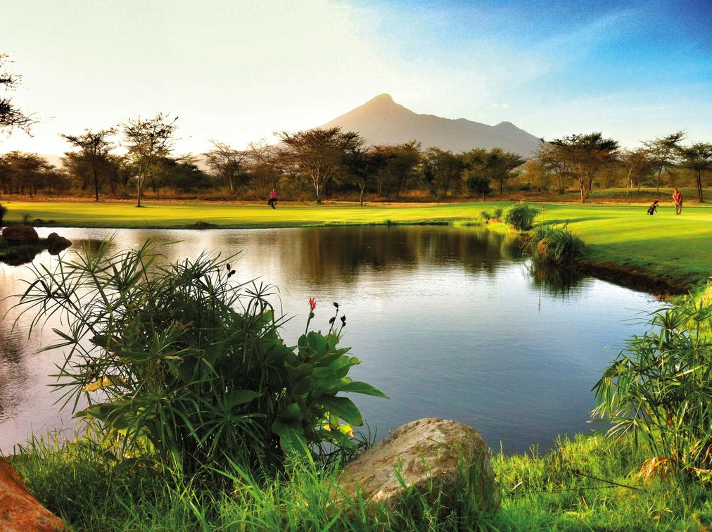 Grenzend aan een 18 holes, kampioenschap golfbaan