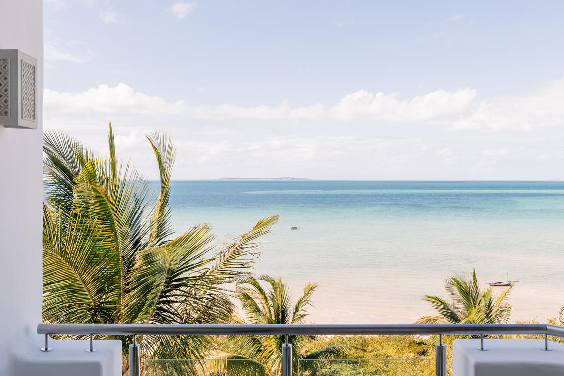 Suiten har utsikt over øya Magaruque, luksuriøs king-size-seng, egen balkong og eget bad.